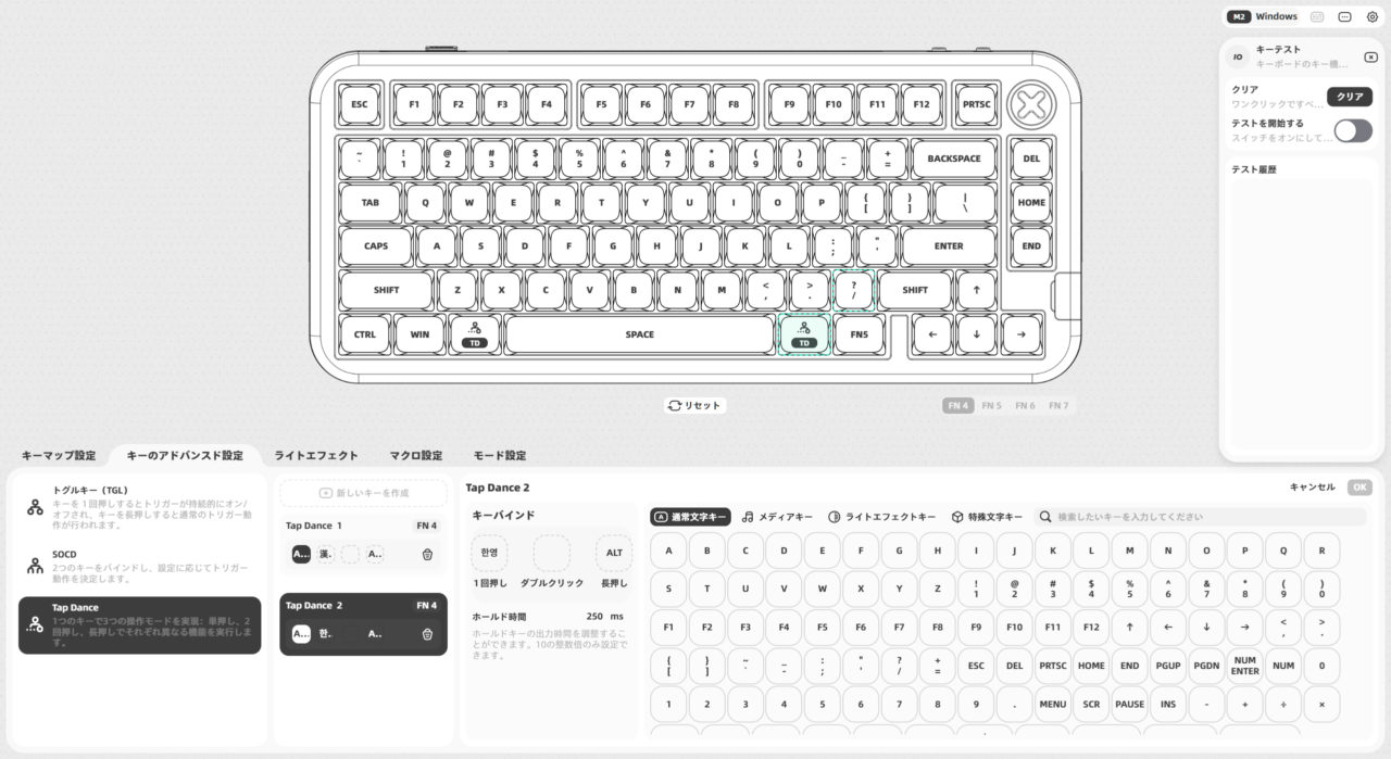 ver1.0とver2.0が存在していて、どちらも試してみた結果、Kick75はどちらでも使用可能なようです。上のスクショはver2.0の画面です。バージョン違いでかなり使い勝手が違うので、今後のことを踏まえて2.0で慣れておいた方が良いのかなと思います。