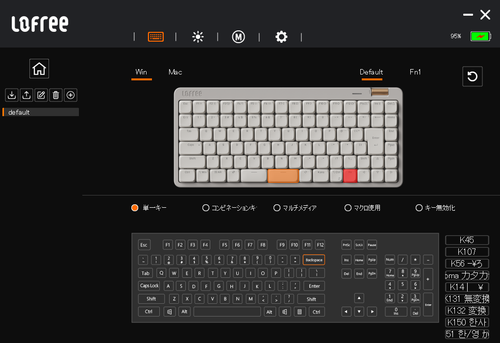 | キーカスタマイズ | Lofree Key Mapper Lofree HYPACE |