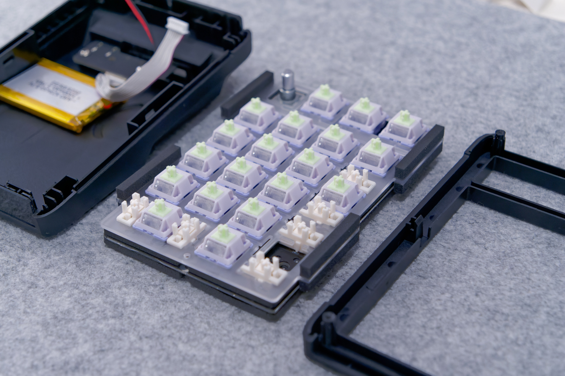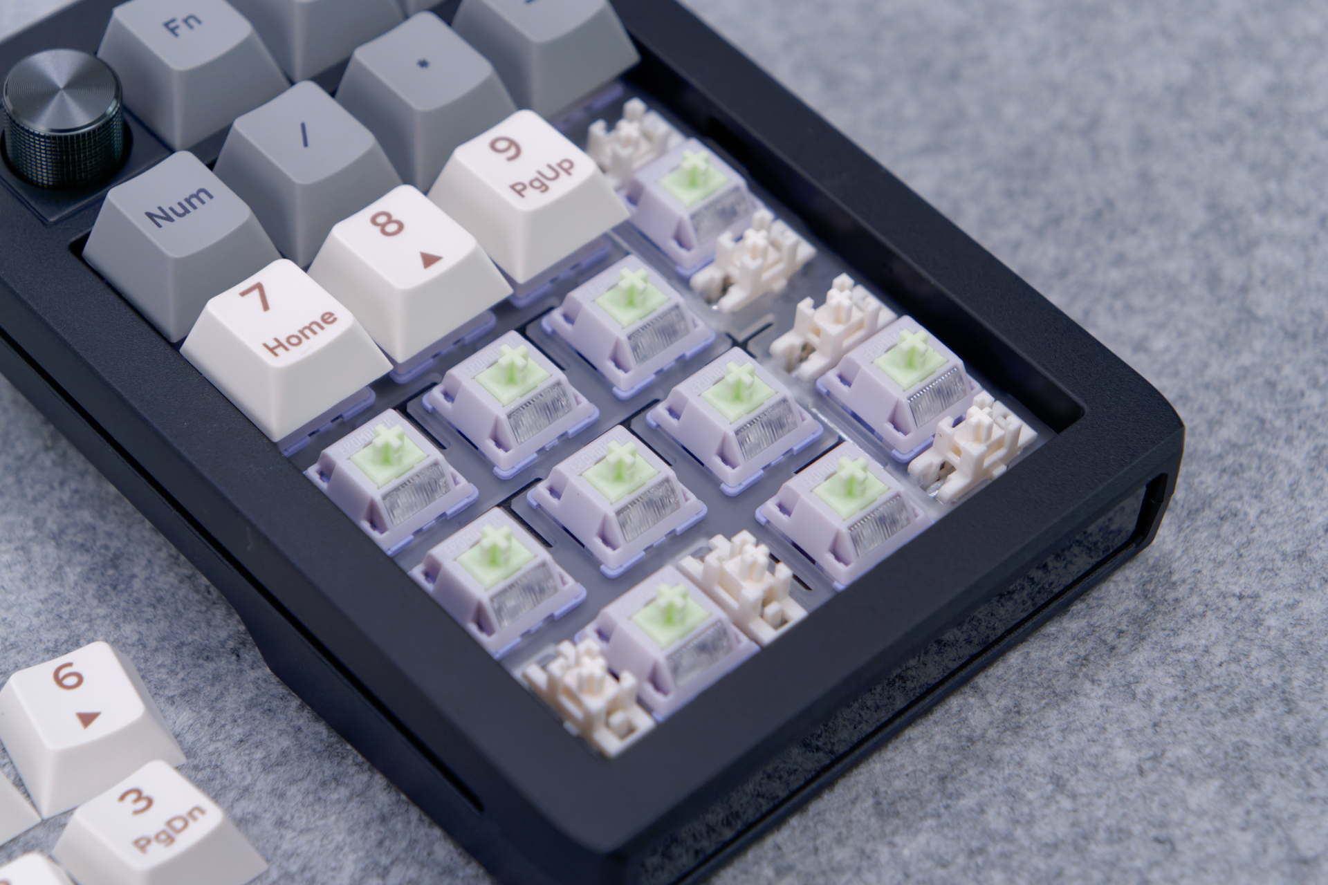 | VIAフルプログラマブルで、キー割り当てやマクロ、ノブ機能の自由度が高い 20キー+アルミノブのシンプルかつ実用的なレイアウト 4層フォーム+ガスケットマウントによる柔らかい打鍵感と綺麗な打鍵音 ABSケースながら質感はマット調で安っぽさがない 選べる2種類のスイッチ(Wisteria V2 / Zebra)で打鍵感を選択可能 技適認証取得済みでワイヤレス接続の利用も安心 価格が手頃で入手しやすい(Amazon実売 6,477円) | プラスチックケースでアルミ筐体のような剛性感や重量感はない ブラックは指紋や埃が目立ちやすい |