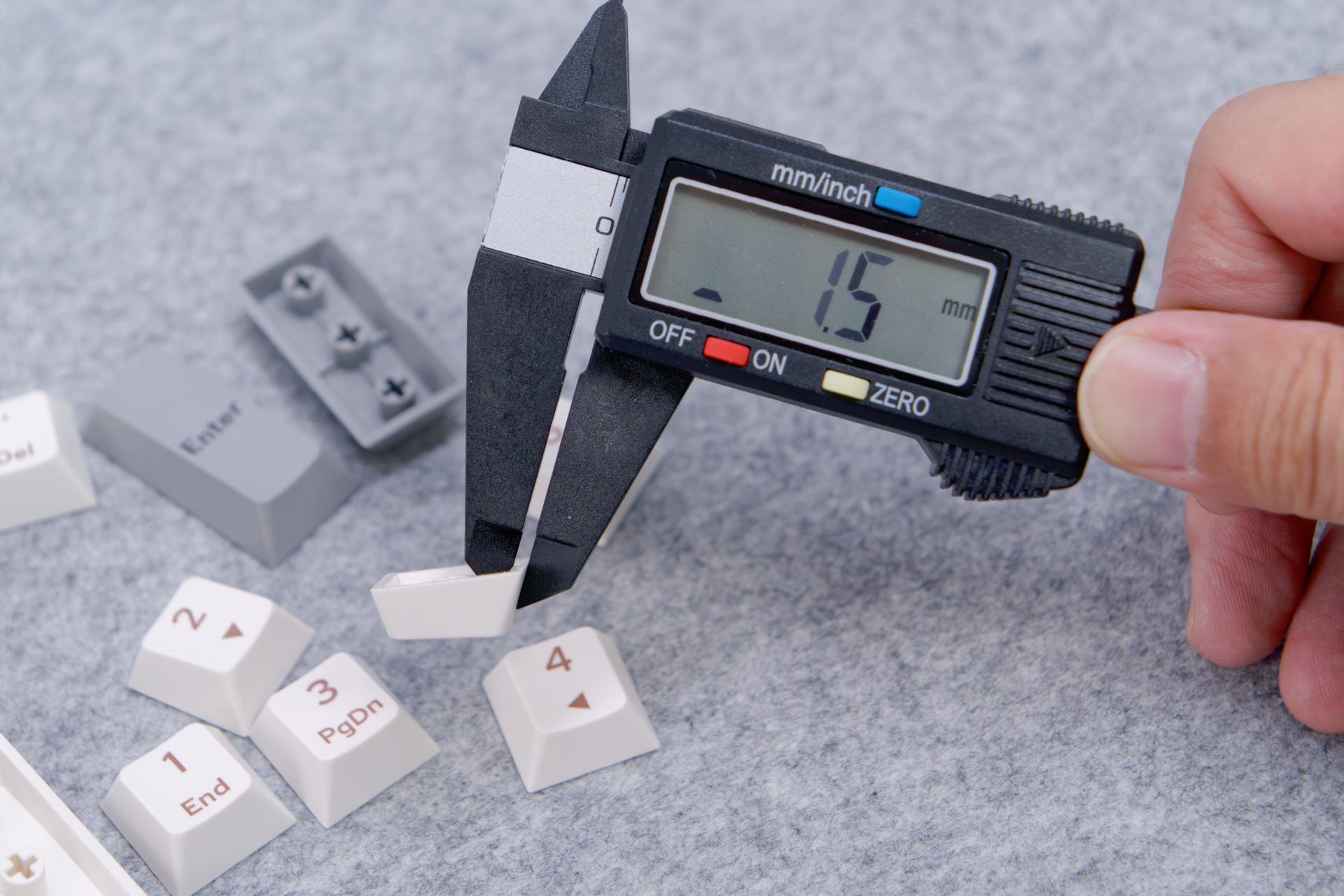 厚みはおよそ1.4〜1.5mmと標準的。打鍵時にやや軽やかな“コトコト”とした音が出やすい傾向があります。