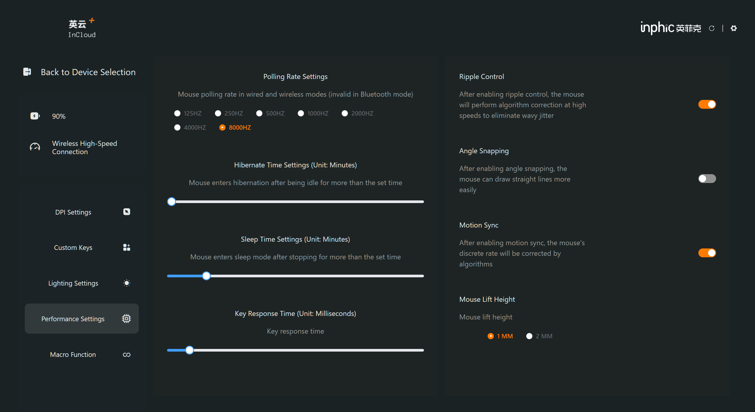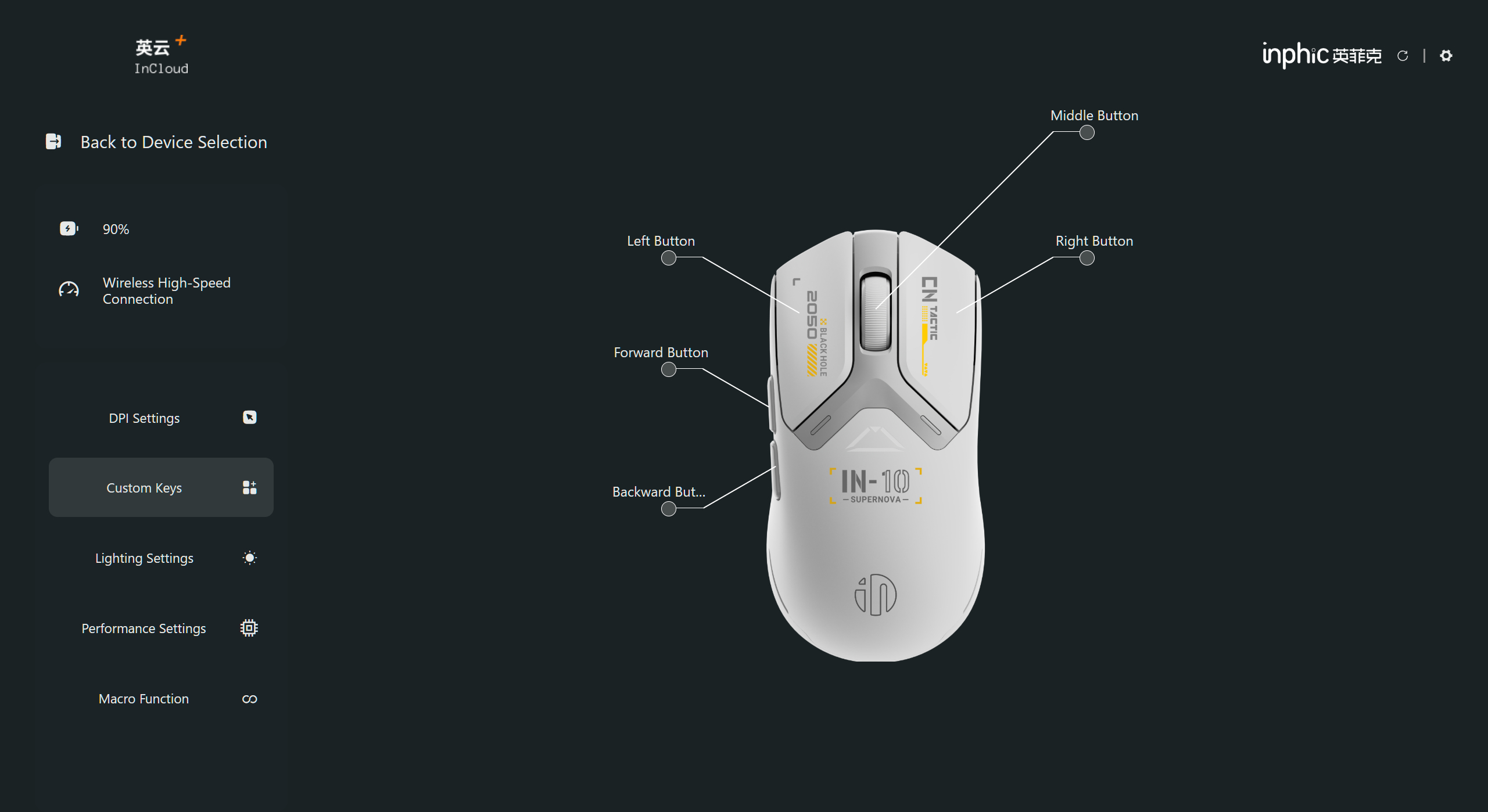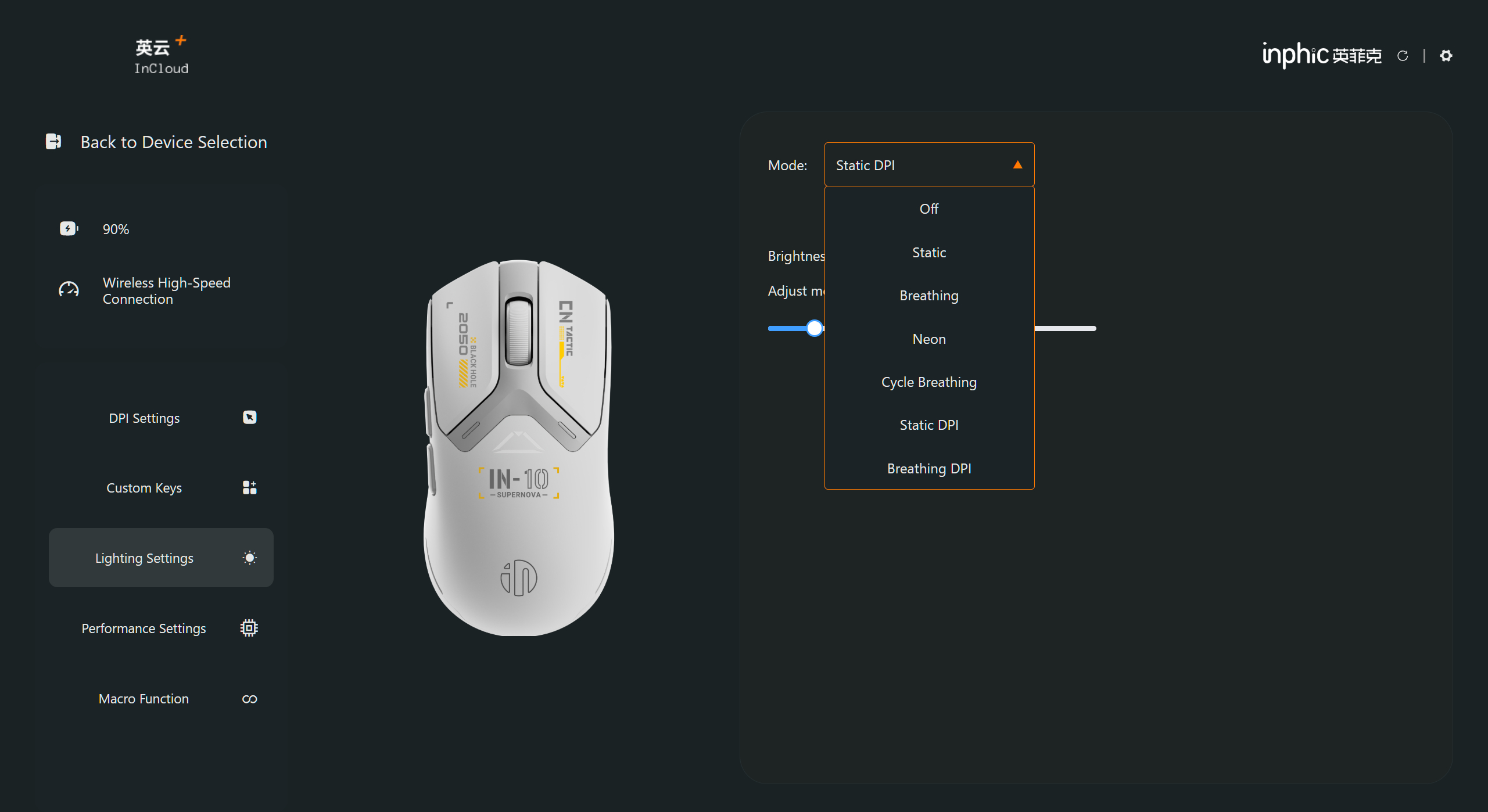 IN10Pには「Inphic HUB」というWebベースのドライバーが用意されており、ソフトウェアのインストールが不要でブラウザからアクセスできます。