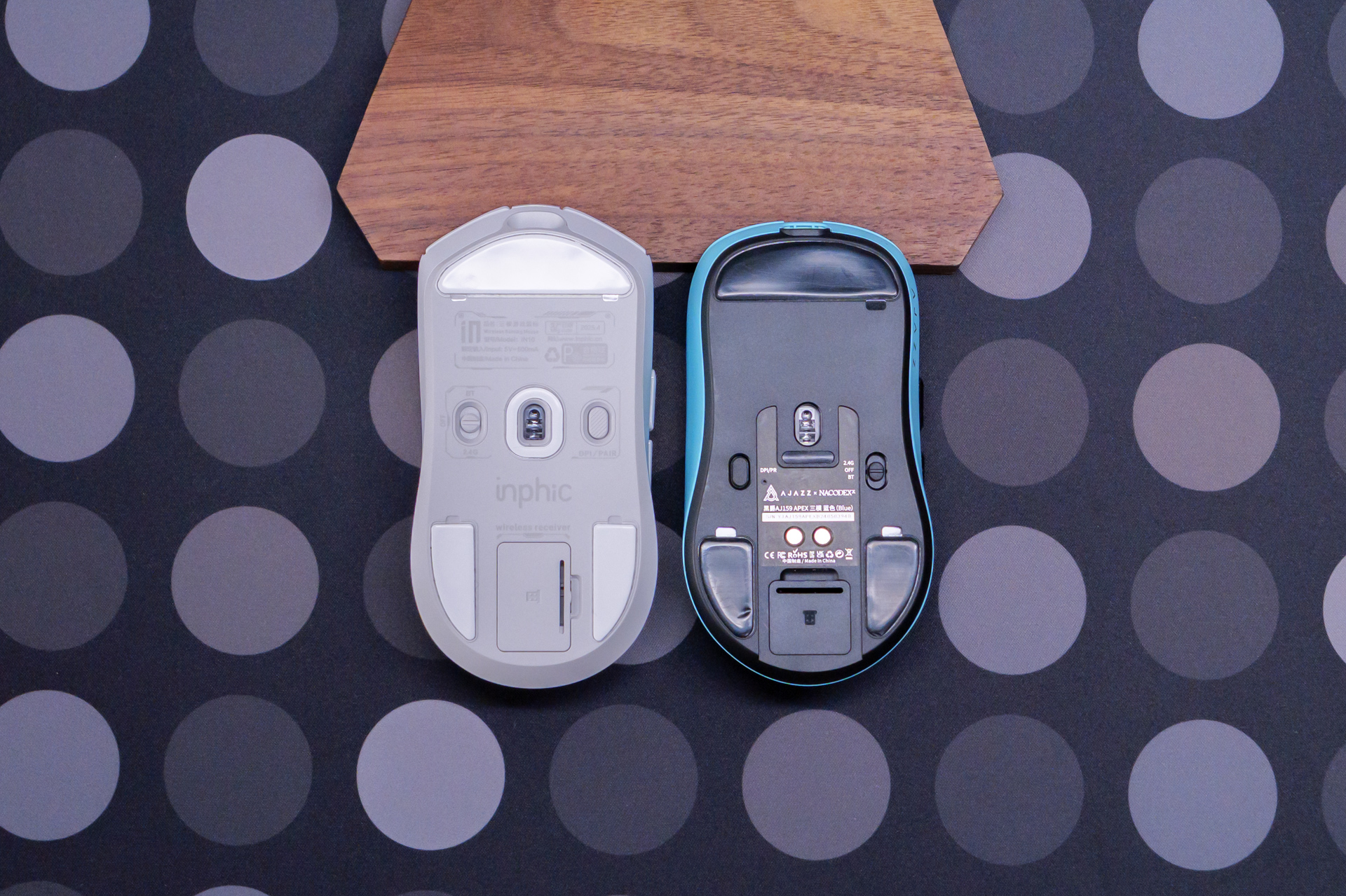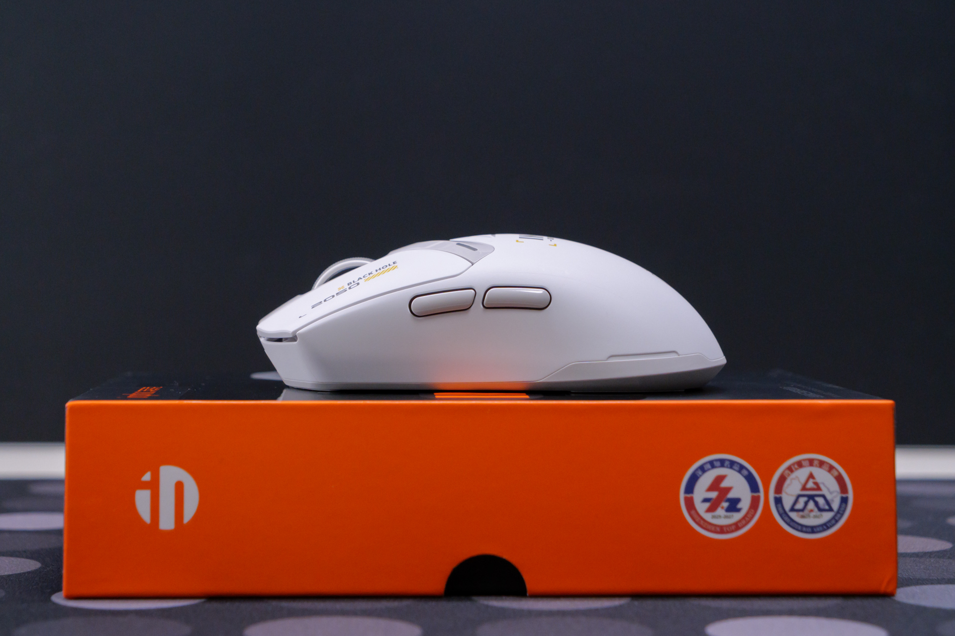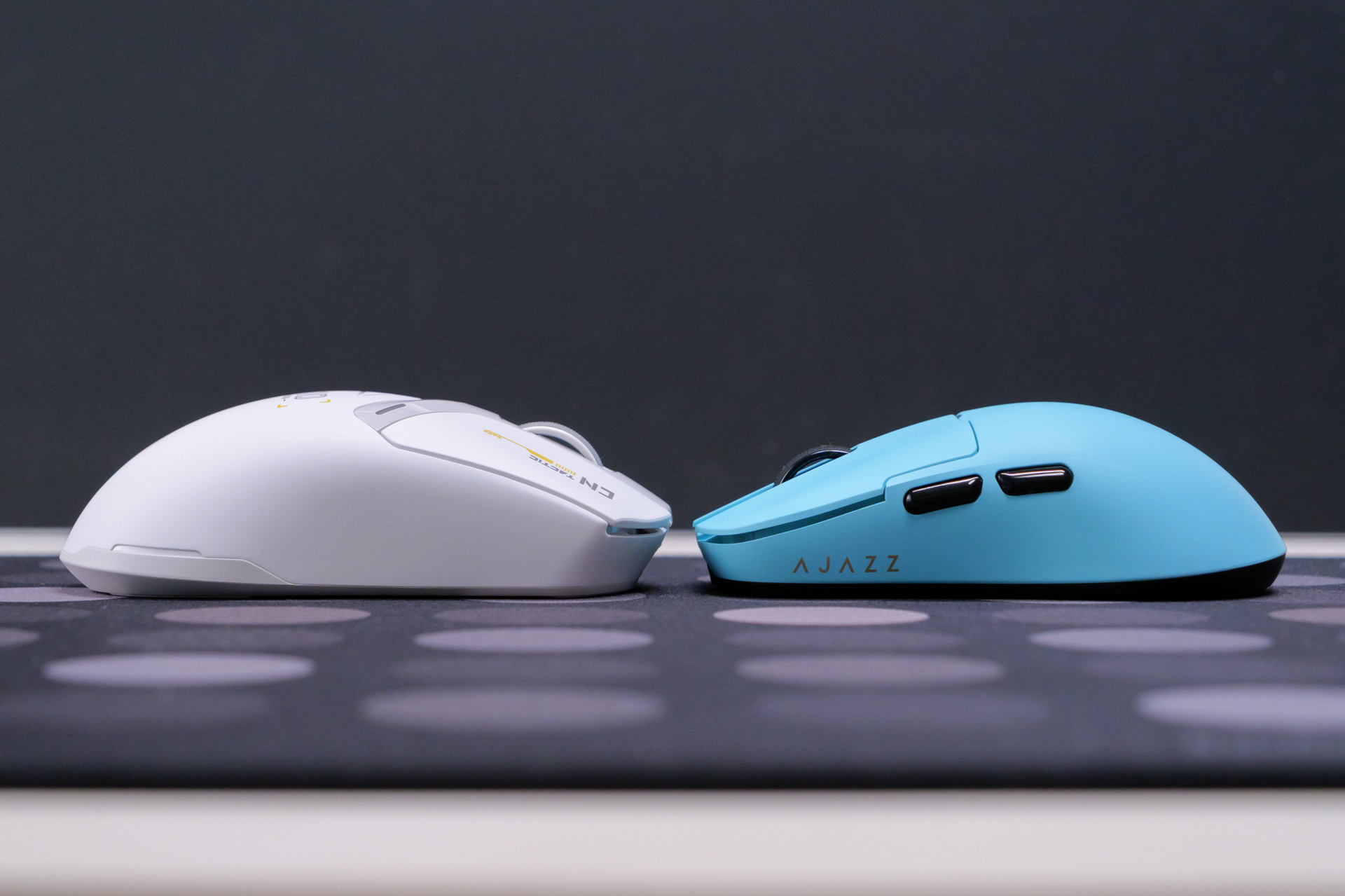 上のスライダー画像にあるように、AJAZZ AJ159 APEXと比べてみると、AJ159は前方ボタン側が低く、後方は尻上がりな形状。対してIN10Pは前後で均等なアーチを描いているので、好き嫌いは分かれにくいと思います。サイズ感はIN10Pの方が若干一回り大きく、くびれも緩やかですが、実際の握り心地は違和感を感じるほどではありませんでした。私は手のサイズは、男性としては少し小さめなので、ほんの少し大きく感じるものの、安定感のある握り心地です。