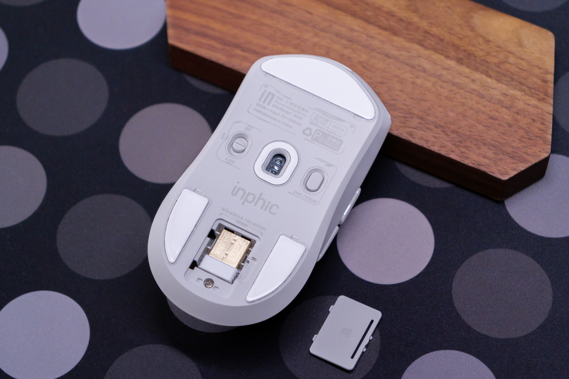 右側のスイッチはDPI切替とペアリング操作に使用します。モード切替をした際やゲーム中・作業中に素早く感度を変えたいときにも便利です。