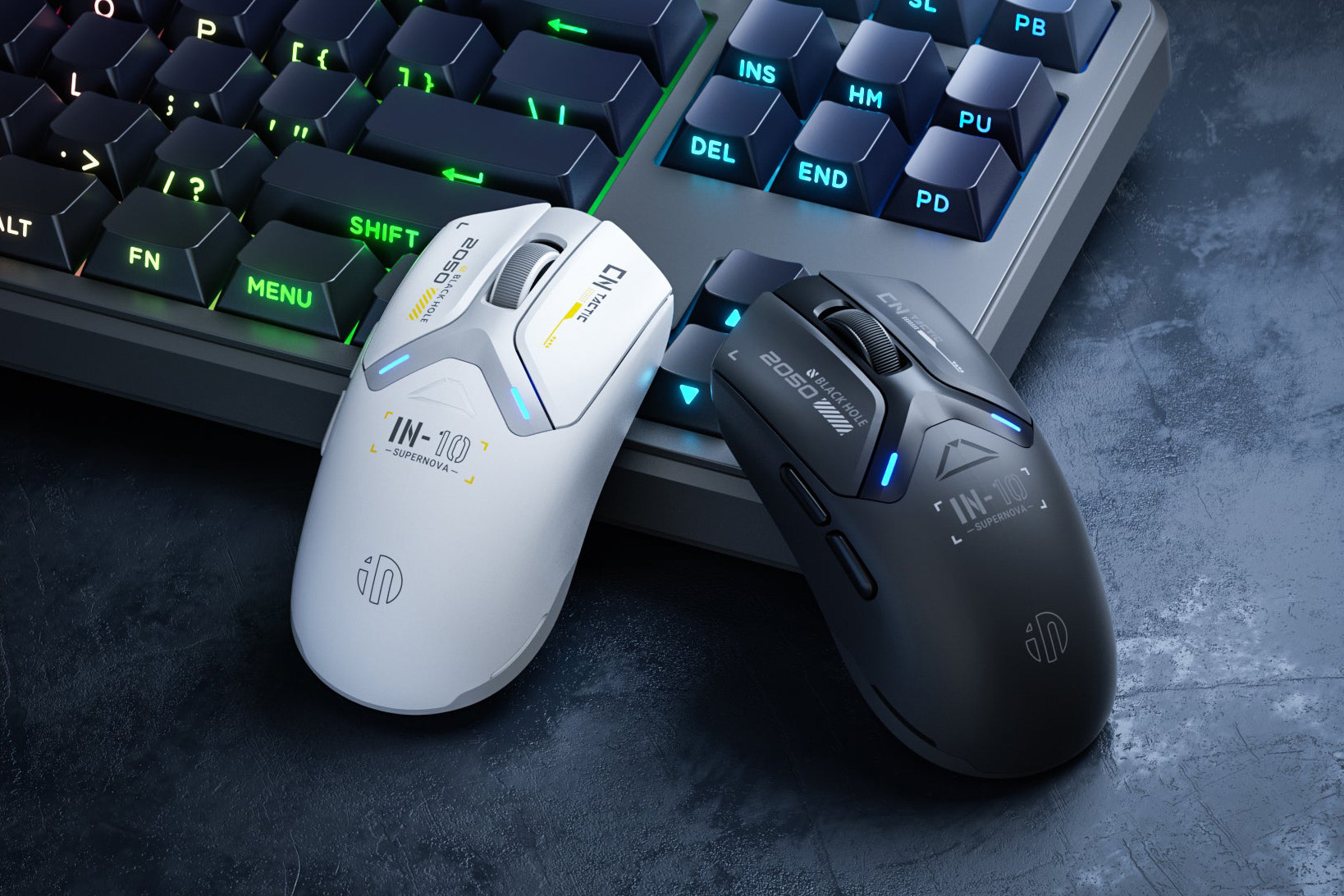 Inphic IN10Pは、宇宙をテーマにした独特のデザインと、クセのないG Pro系シェイプを組み合わせたゲーミングマウス。