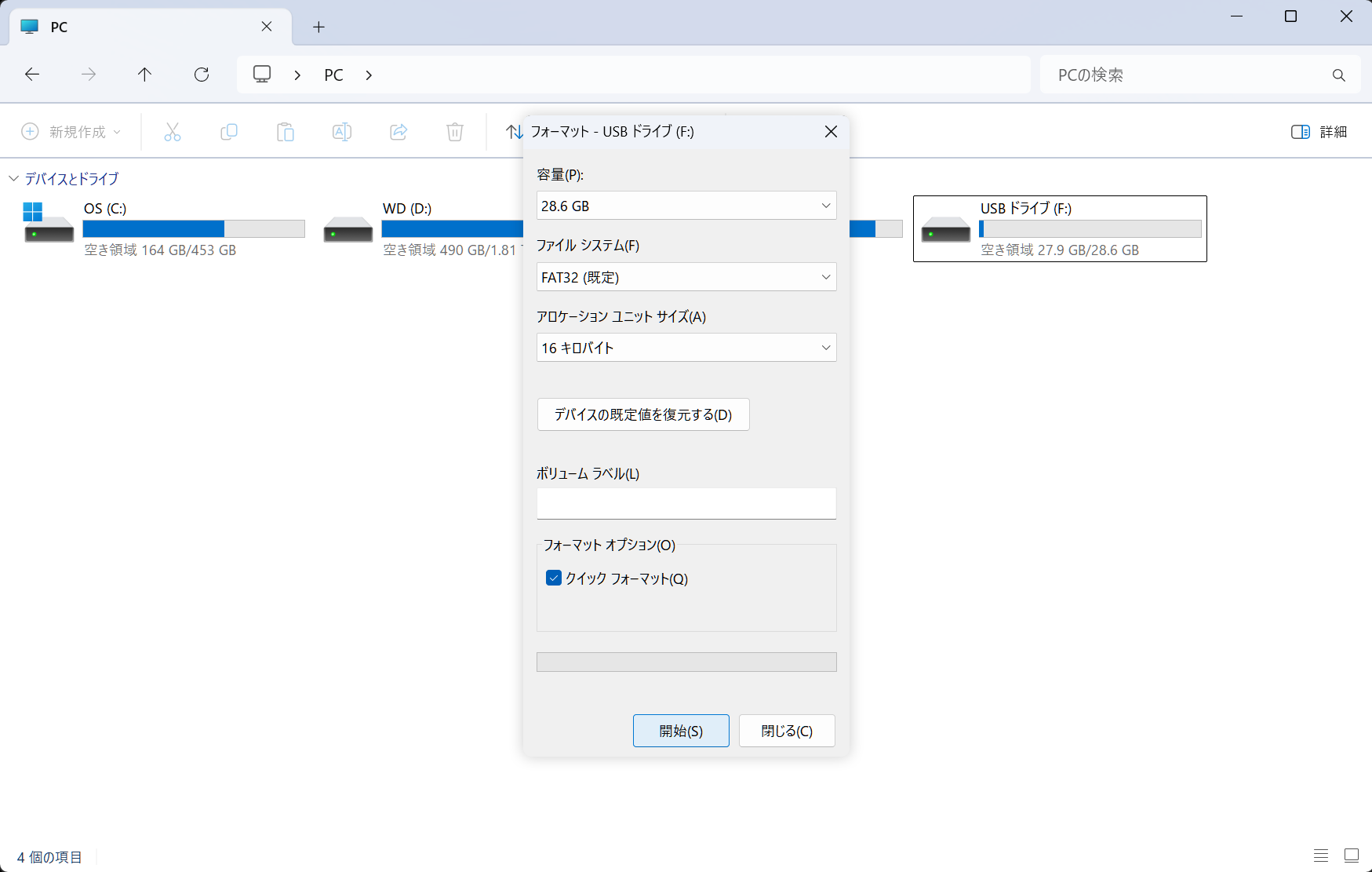 ※公式サイトにも「フォーマット済み」という表記がありますが、クイックフォーマットのことを指しています。