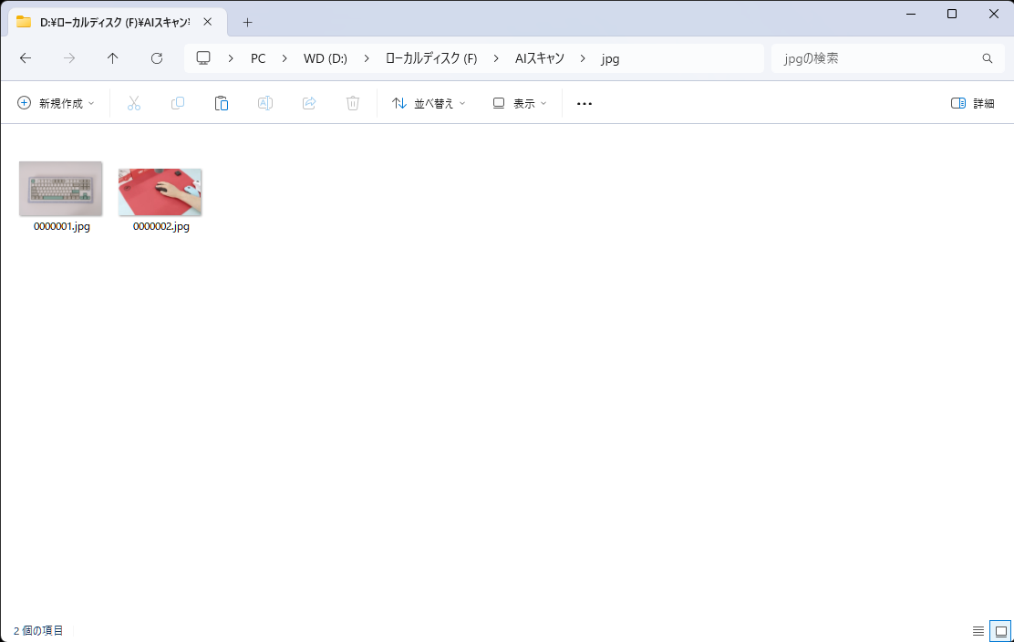 今回はフォルダツリーに「AIスキャン」フォルダが生成され、そこにファイルがリストアップされています。