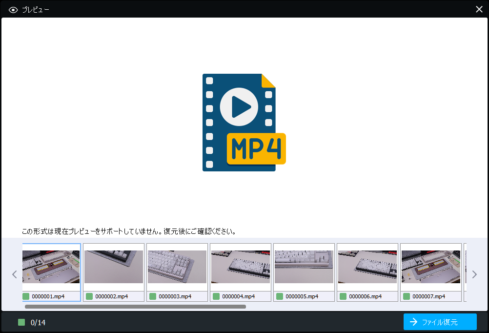 プレビュー確認できたファイルについては、実際に復元しファイルの再生も問題ありませんでした。
