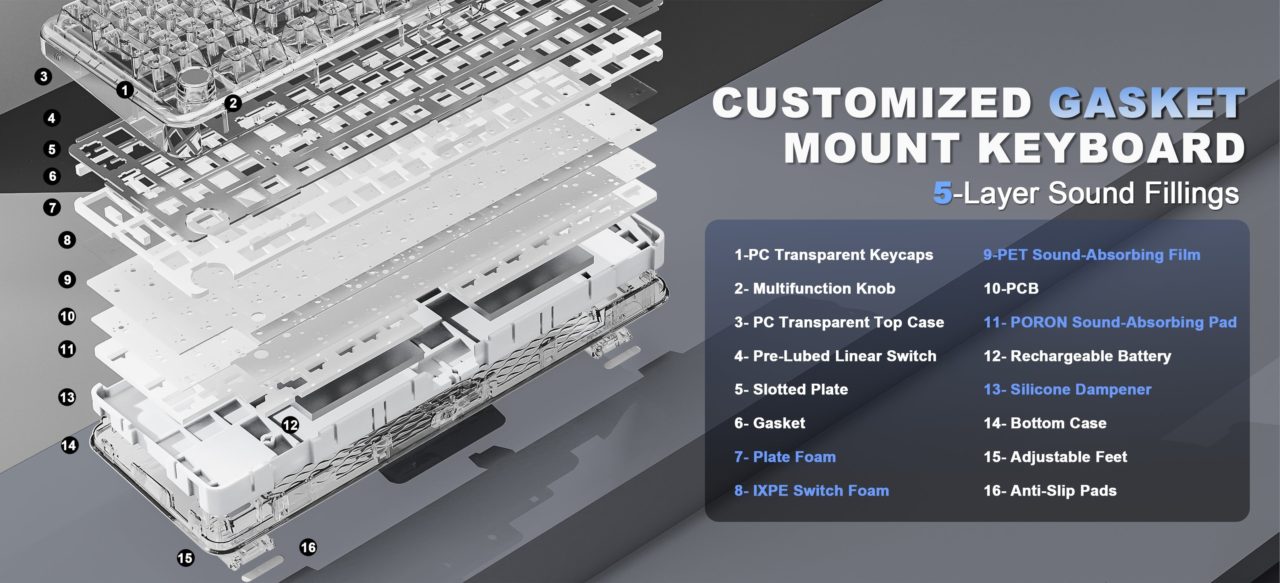 5層の静音フォーム+ガスケットマウントによる高い静音性と安定感