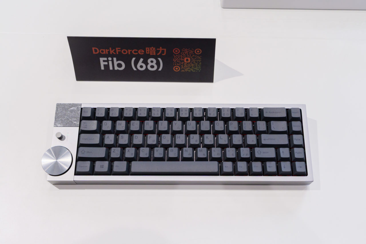 DARK FORCE Fib (68) という初見のキーボードです。シルバー・ブラックとシルバー・ゴールドの2台だけ、ぽつんと展示していました。