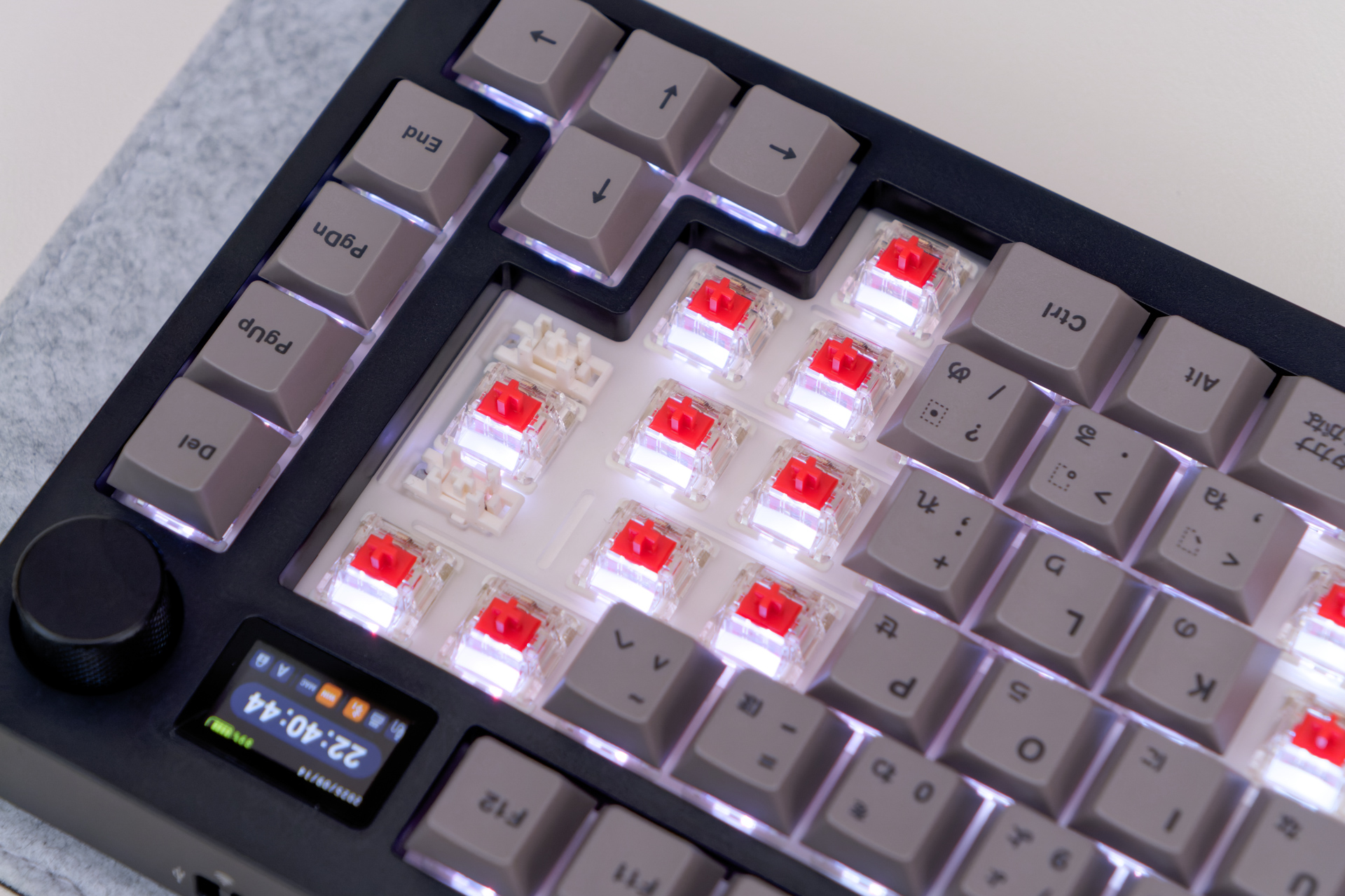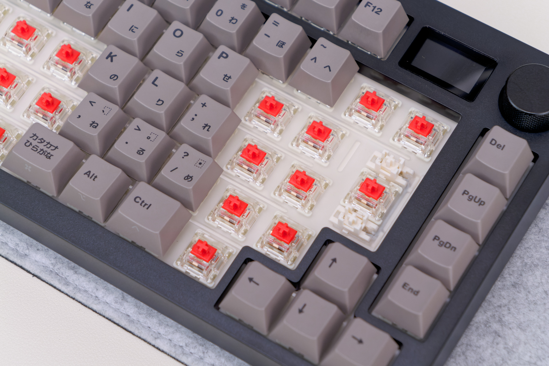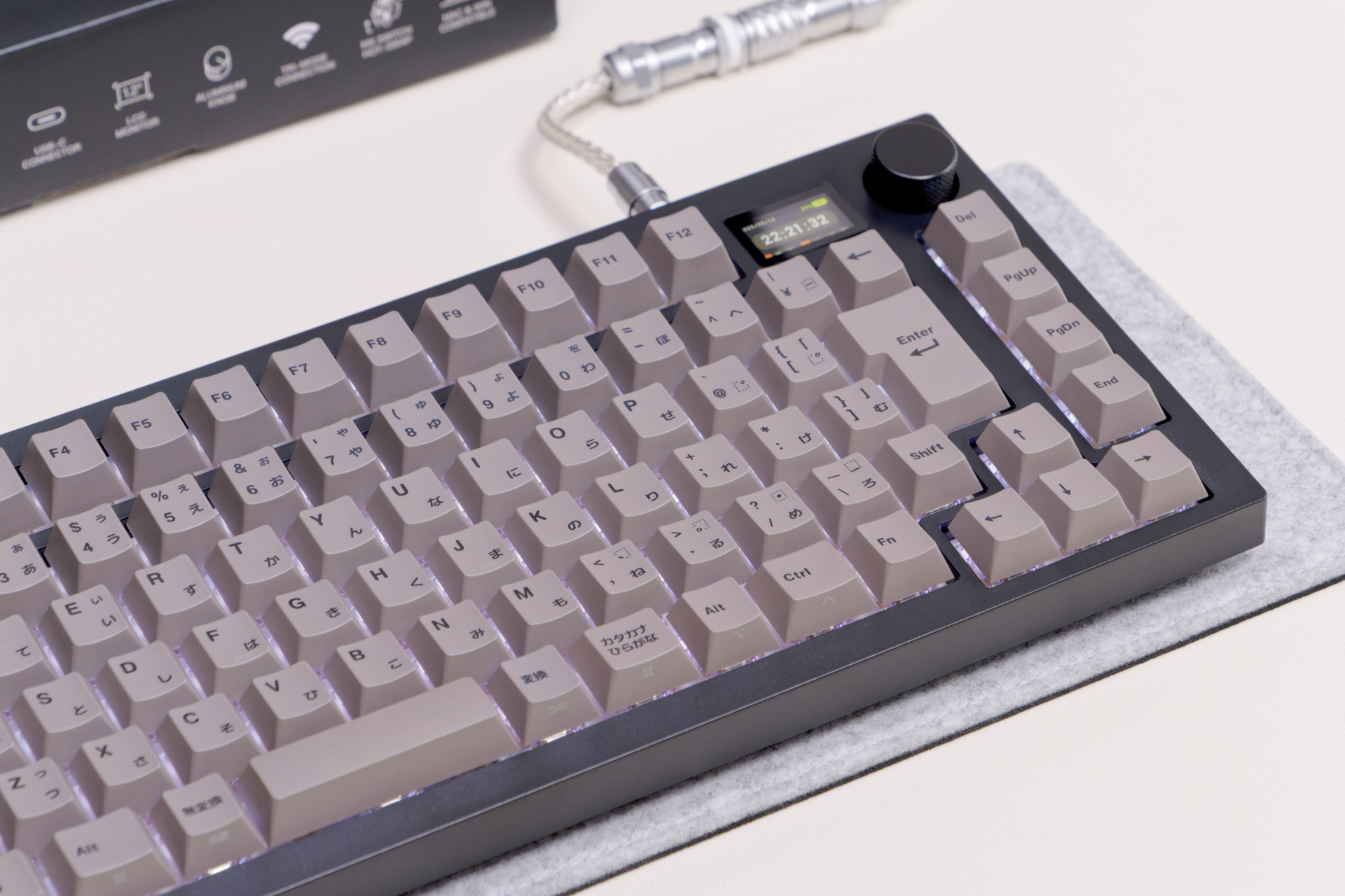 | コンパクトな75%サイズで日本語JIS配列 ナビゲーションキー独立タイプが使いやすい LCDスクリーン+ノブで直感操作可能 ABSケースながらもガスケット・静音フォームによる静音設計 軽快な打鍵感、カタカタ系の静かな打鍵音 静音タクタイルスイッチが新鮮な感覚 |