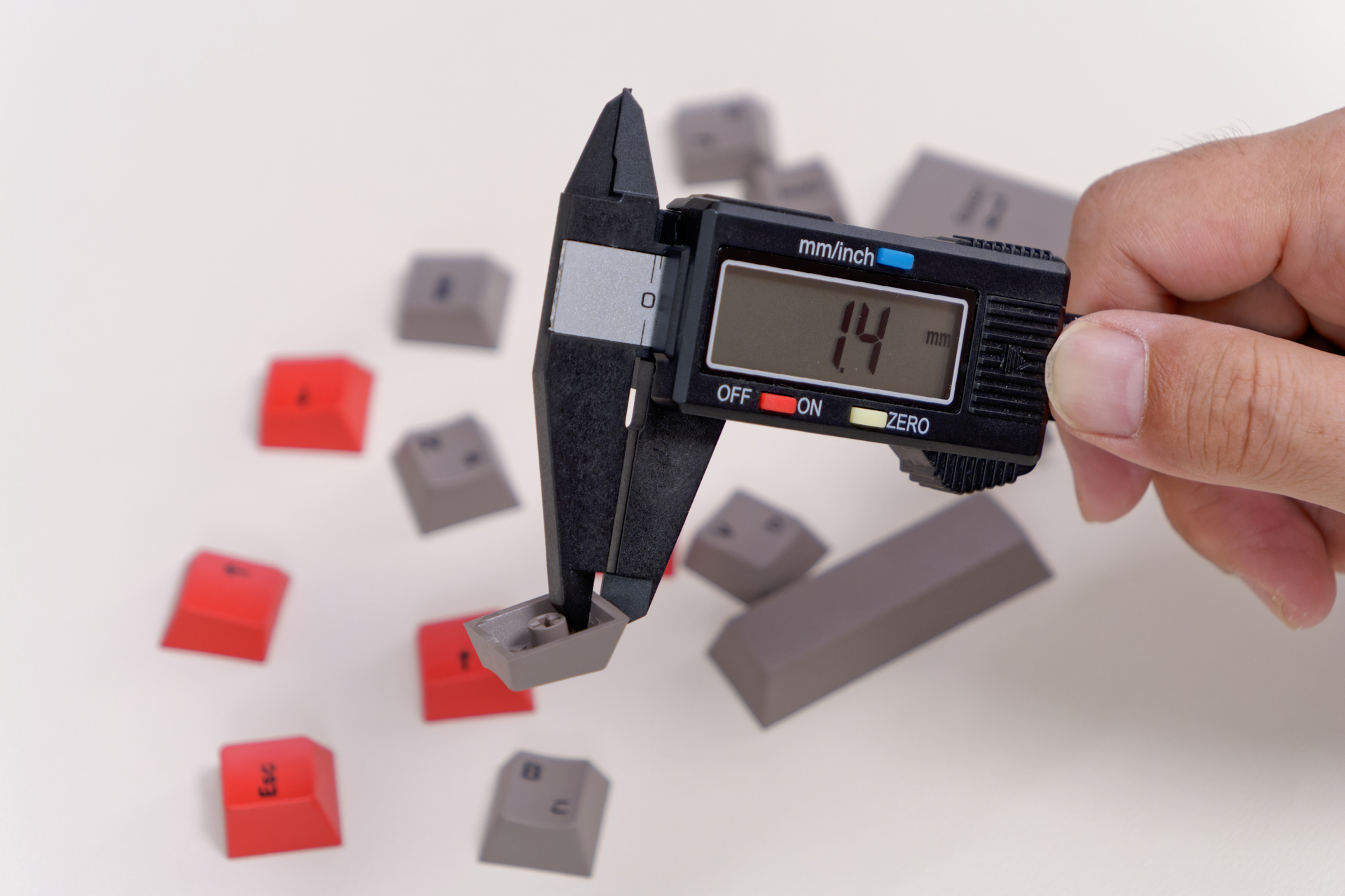 キーキャップはDye-Sub(昇華印刷) PBTで、厚みは1.4mm~1.5mmと標準的です。
