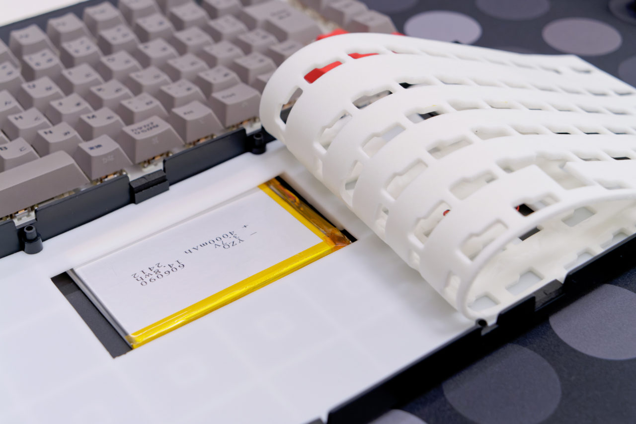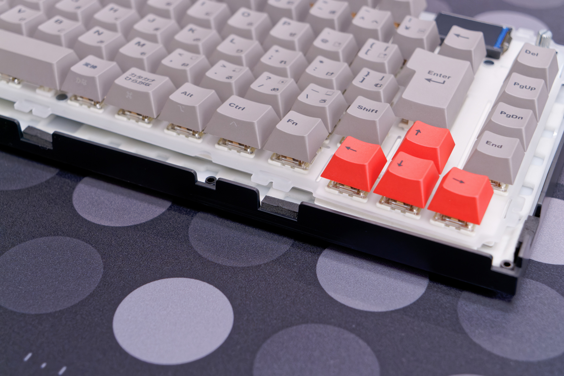 ガスケットマウントについては、Poronガスケットがボトムケース各所に仕込まれていて、そこにPCプレートがマウントされているため、打鍵時の衝撃をしっかりと吸収してくれます。