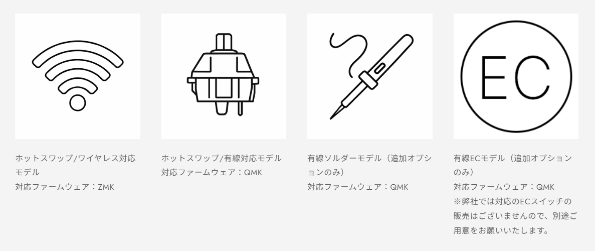 追加オプションで「ソルダー(はんだ付け)PCB」と「有線EC(静電容量)PCB」を追加することができます。