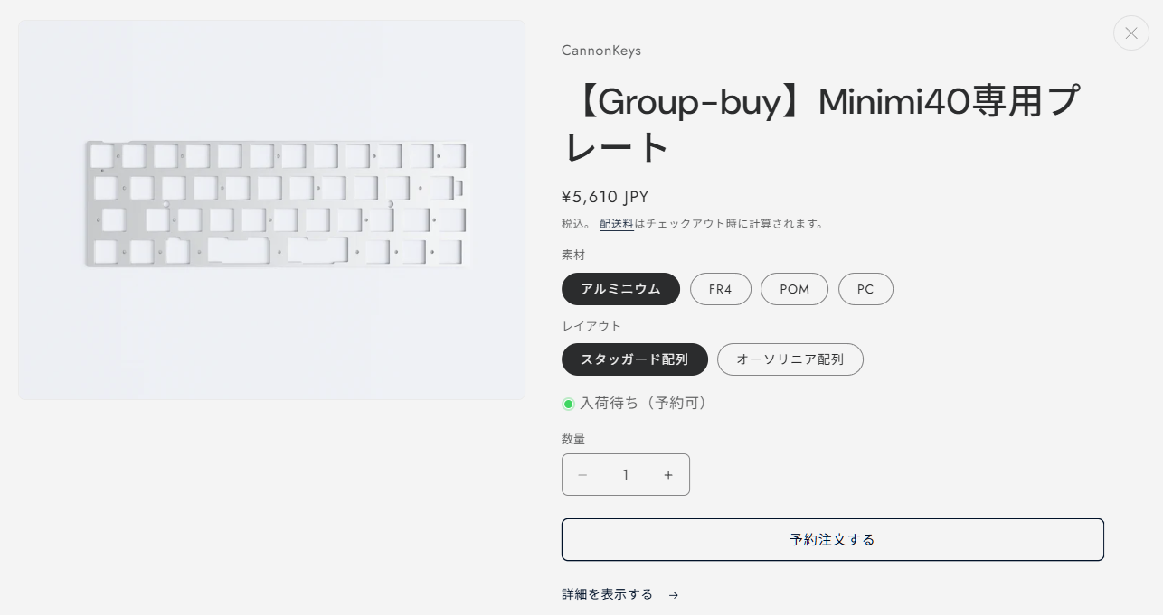 プレート変更や配列変更、パーツのストックをしたい方は、オプションで色々と追加するという感じです。