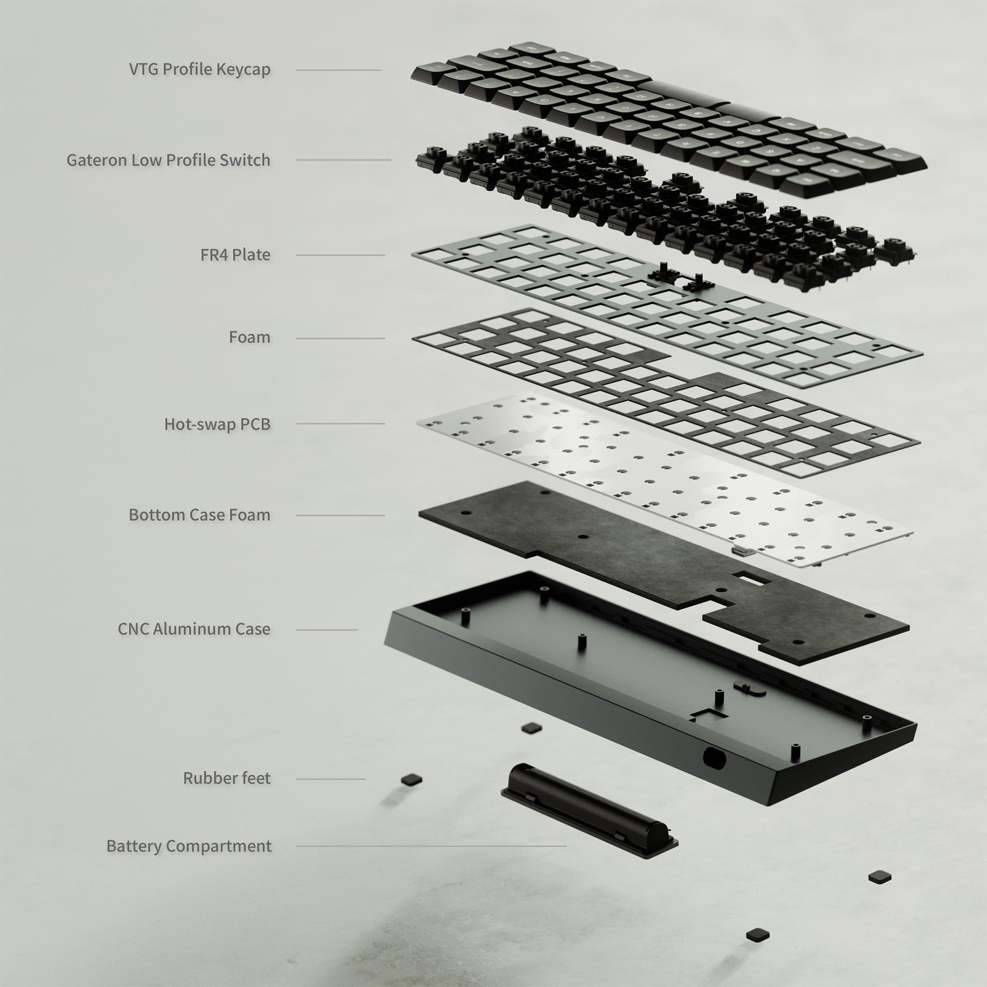 しかも今回はさらに、 “静音スイッチモデル(Gateron LP Silent 2.0 Red)” が追加され、プレオーダー開始されました。