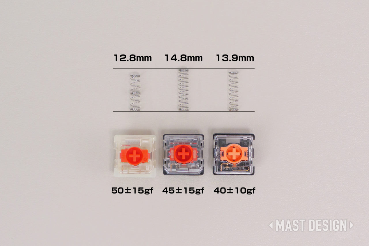Gateron LP Silent 2.0の押下圧はスペック上「45gf前後」のはずですが、体感は50gf以上に感じたため、