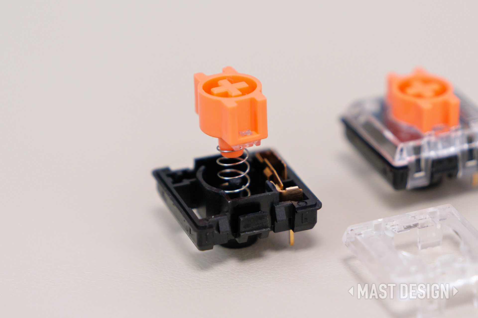 スイッチ穴まわりはしっかりメッキ処理されており、スイッチの爪やスイッチプラーによる欠けを防ぐ補強が施されています。