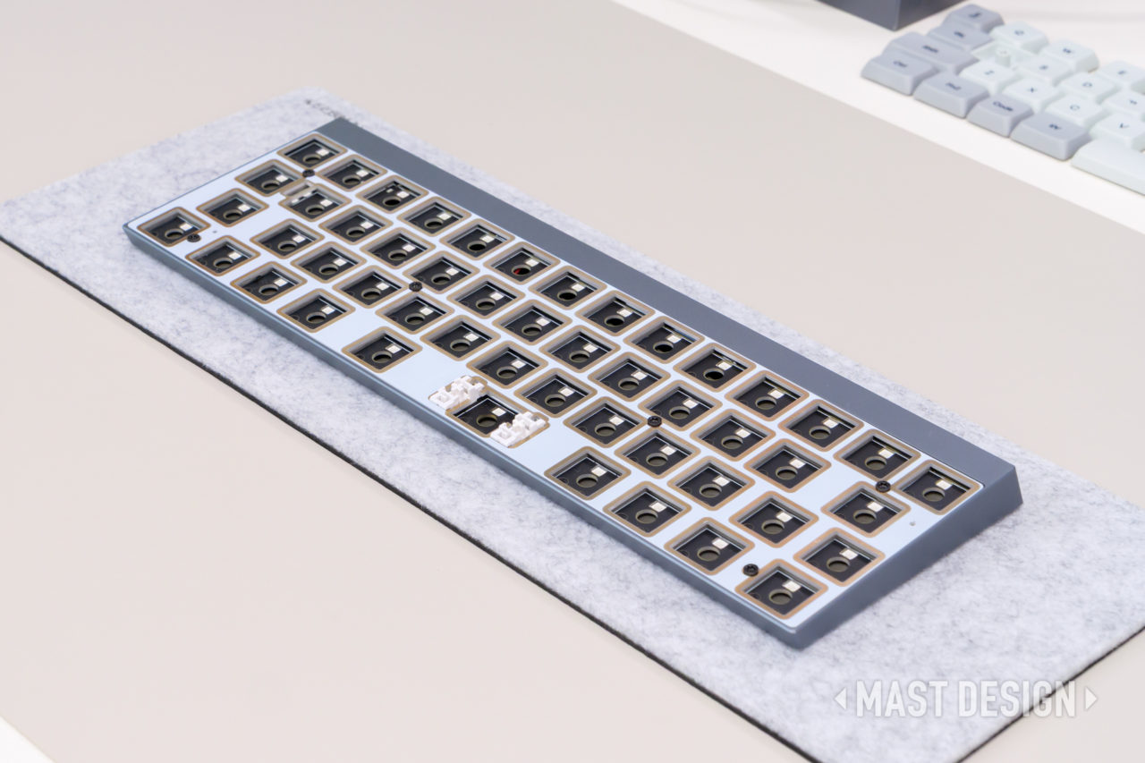 ガスケットではなく “FR4+ケースマウント” という構成のため、比較的しっかりめの、硬質な打鍵感が得られるのがポイントです。