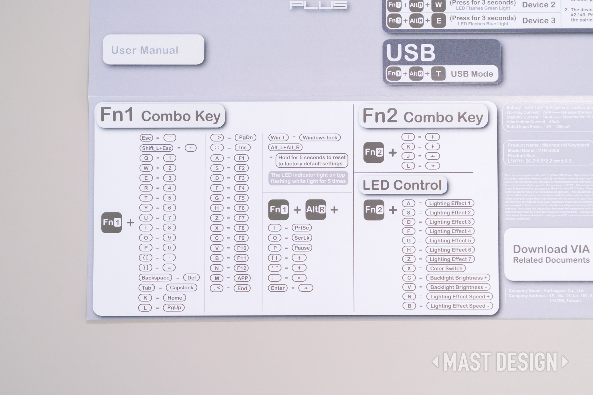 さらに、40%としては多めの50キー構成、左右に分かれた2つのSpaceバー、Fnキーを2つ搭載している点も実用性が高いポイント。VIAでのキーカスタマイズに対応し、接続もTriモード、もちろん技適認証も取得済みです。
