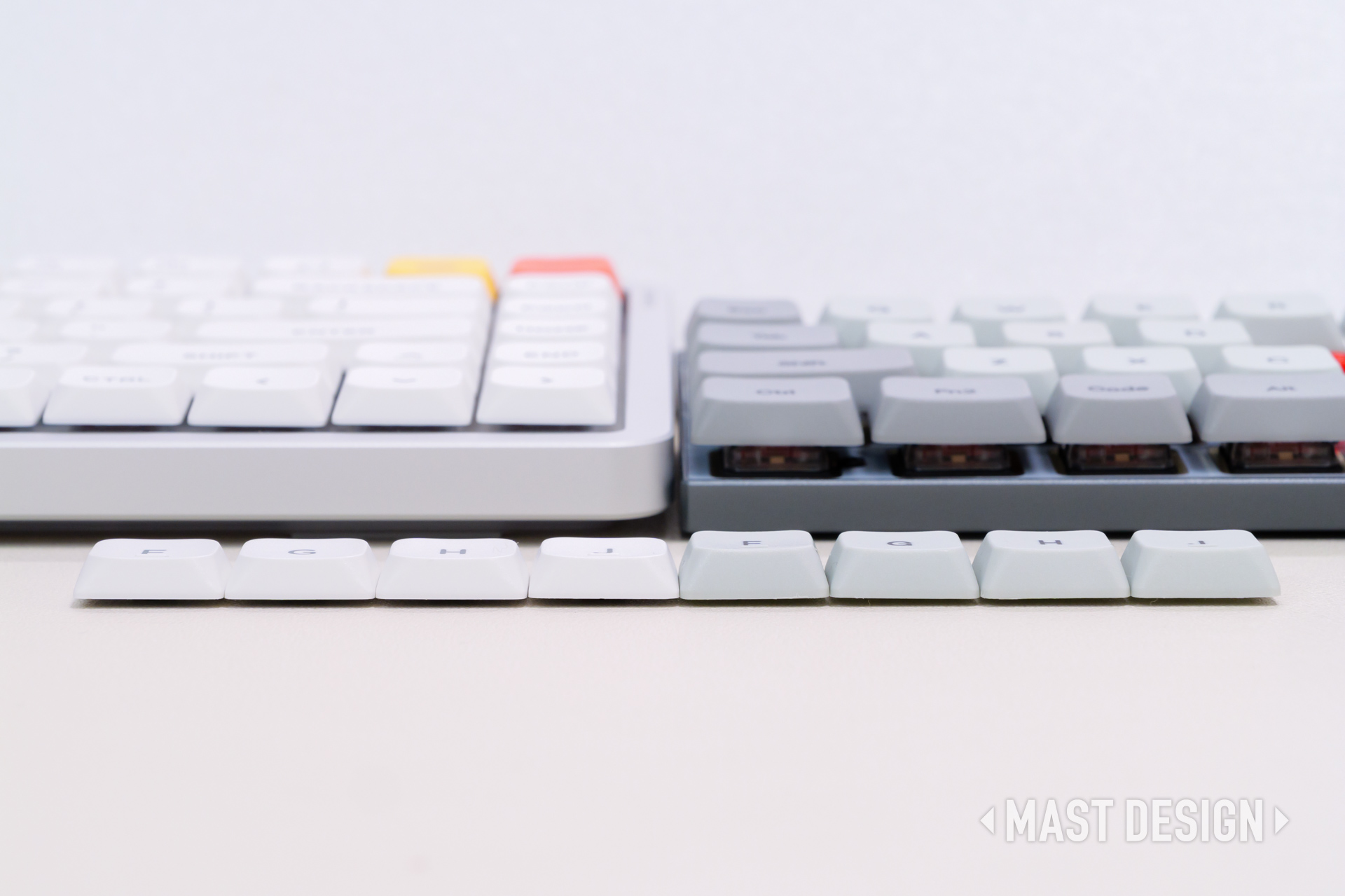 アルミニウムケースの色は共通のようなので、違いはキーキャップのカラーとなっています。