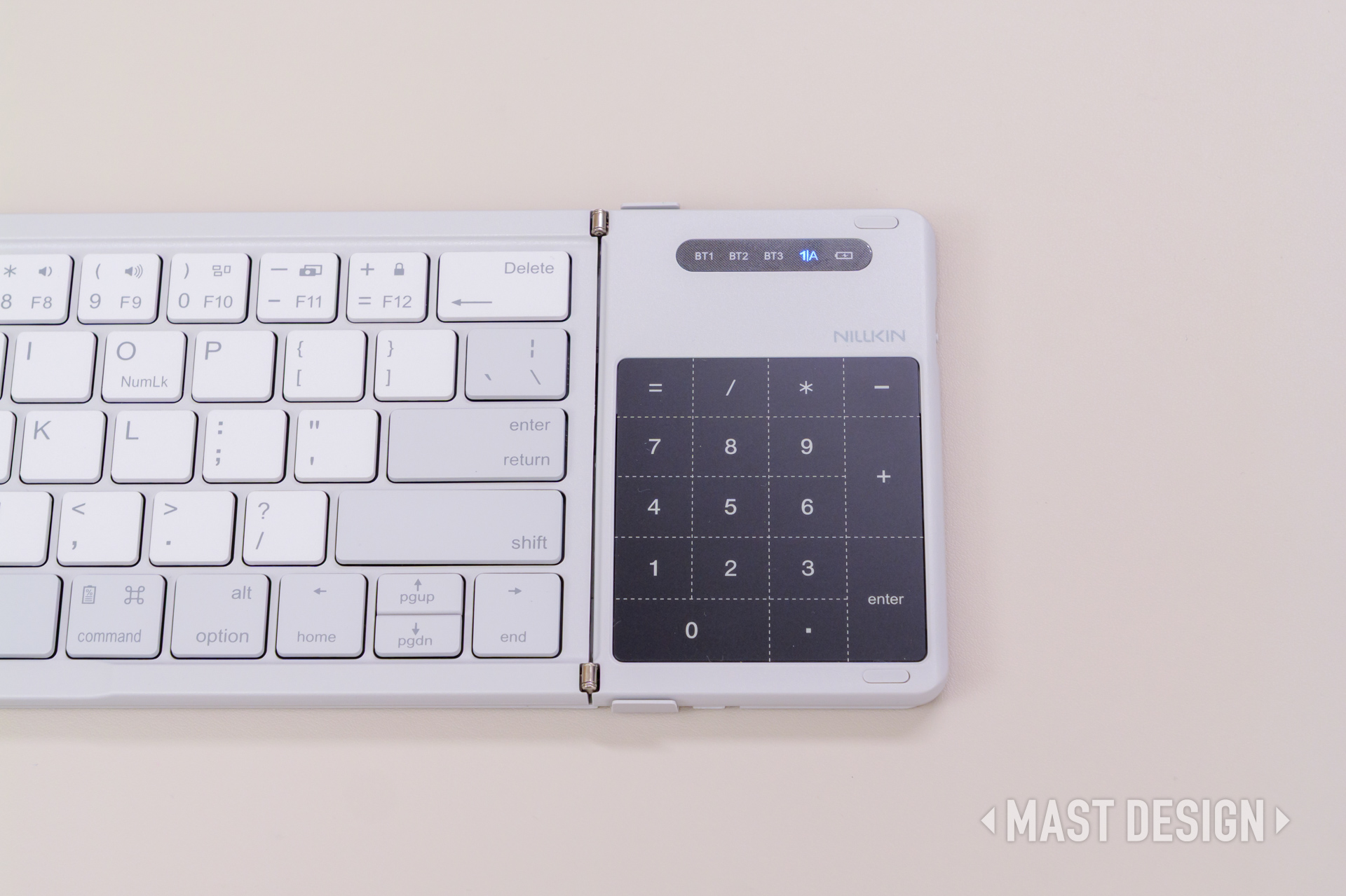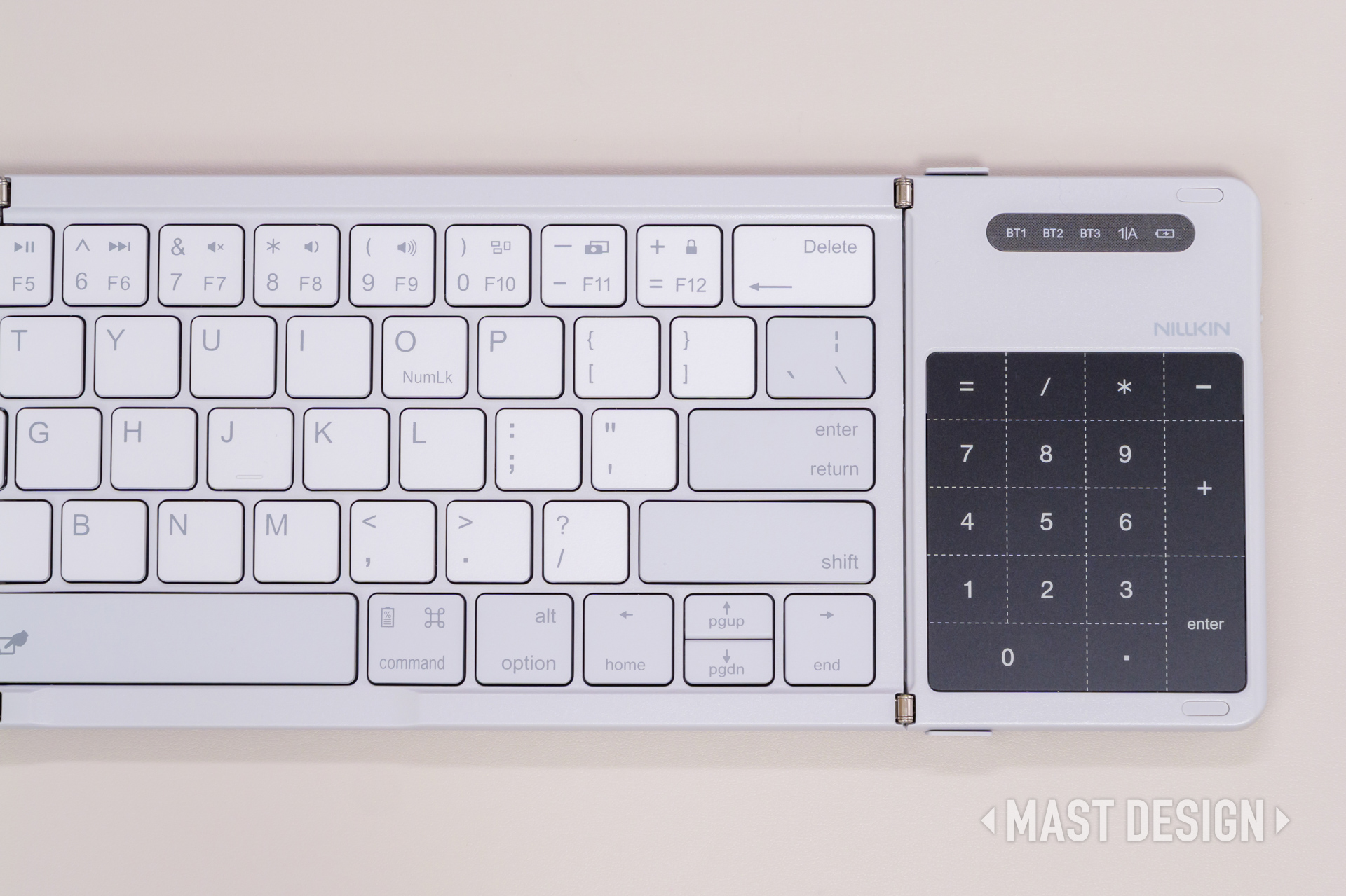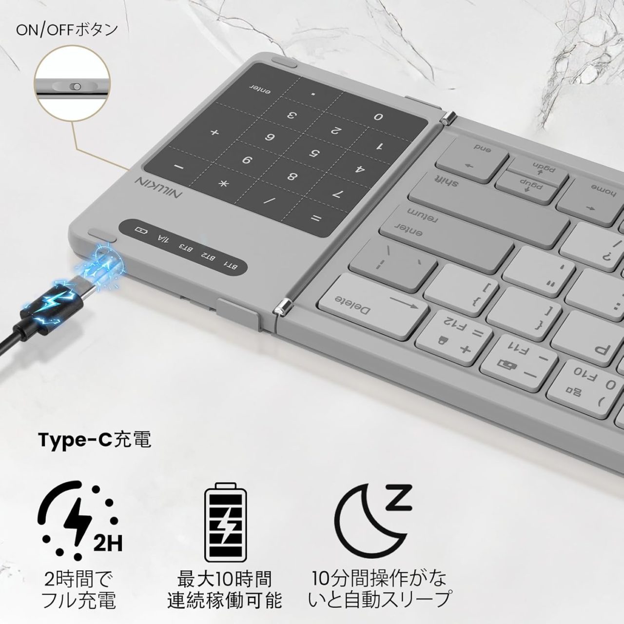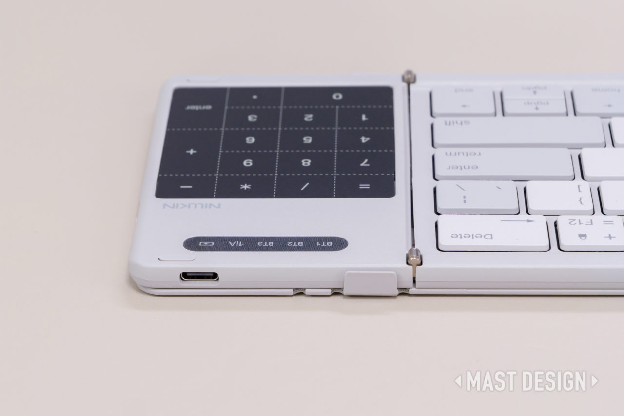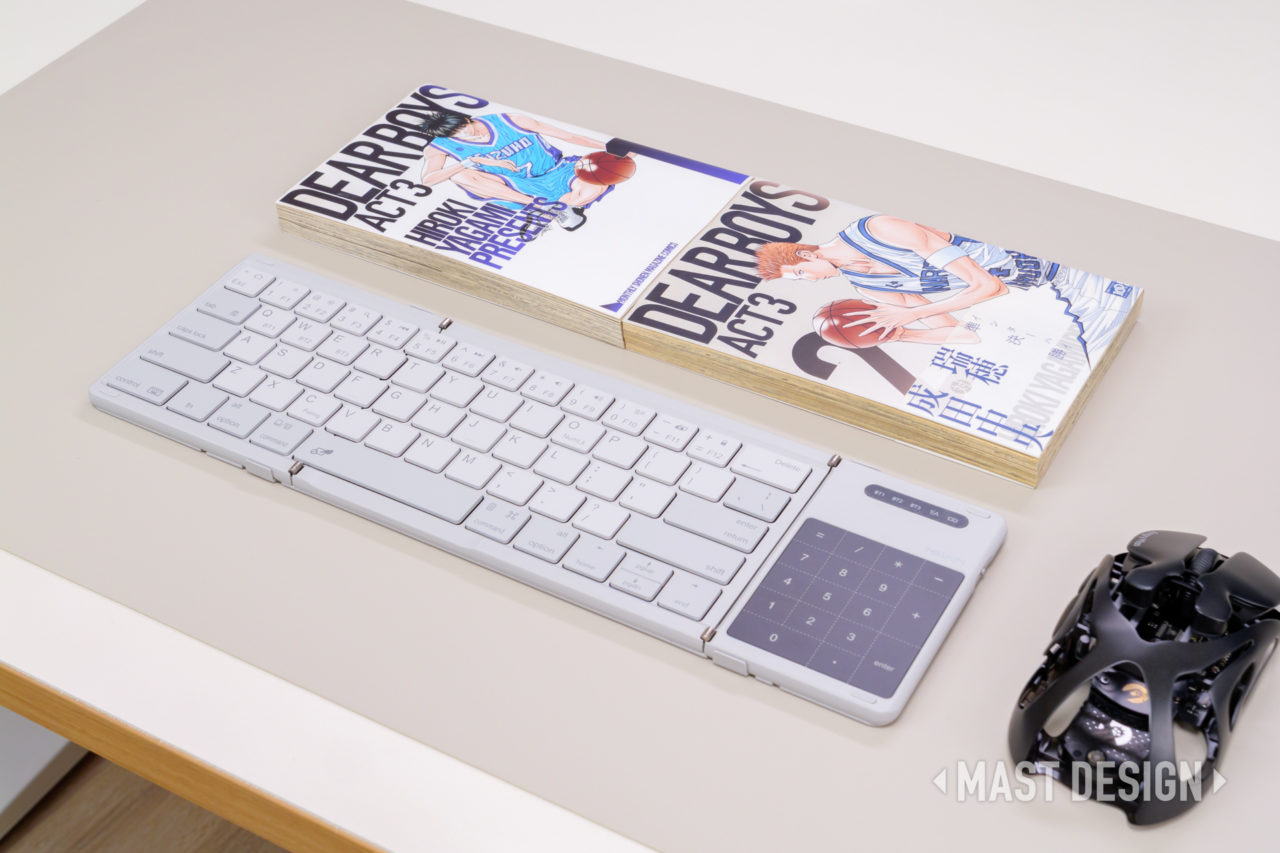 折りたたみ式の手軽さに加え、タッチパッドやテンキー切替といった実用的な機能をしっかり搭載しつつ、ミニマルで洗練された外観も大きな魅力。