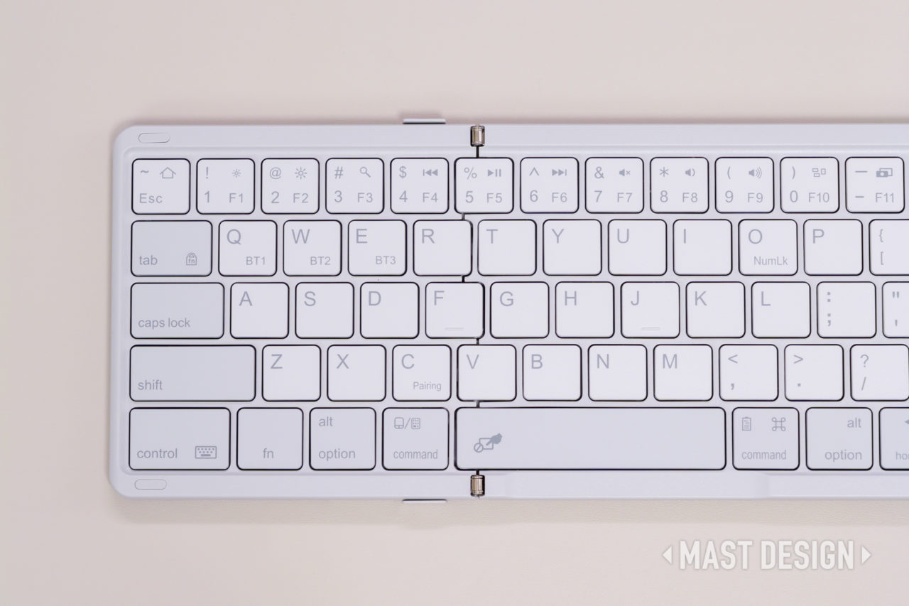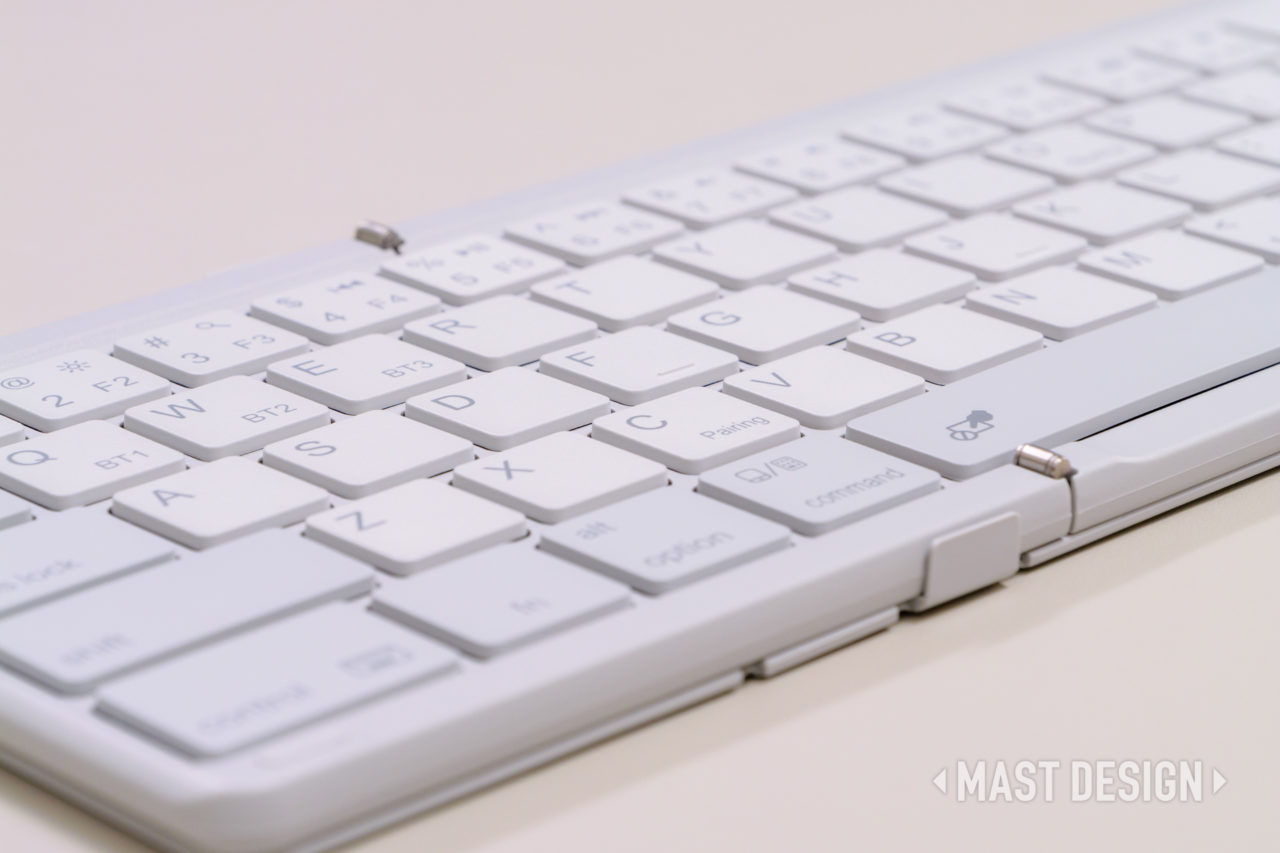 モバイルキーボードの中で英語配列は珍しく、レイアウトや刻印がシンプルでキレイな印象。