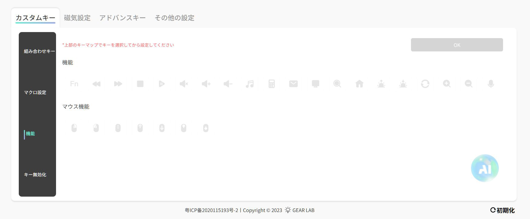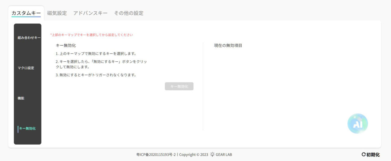 Webドライバーを開くと、カスタムキーの画面が表示されます。こちらでは上記4項目の設定ができます。