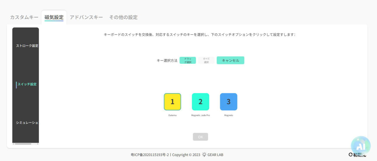 キーボード設定 ⇒ 磁気設定(ラピッドトリガー等)