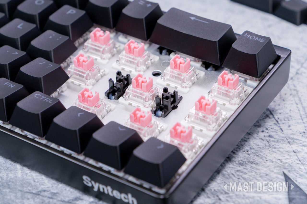 内部構造はトレイマウントで、どこかクラシックな雰囲気があり、横から見るとキーキャップとケースの隙間からスイッチが見えるのも特徴です。