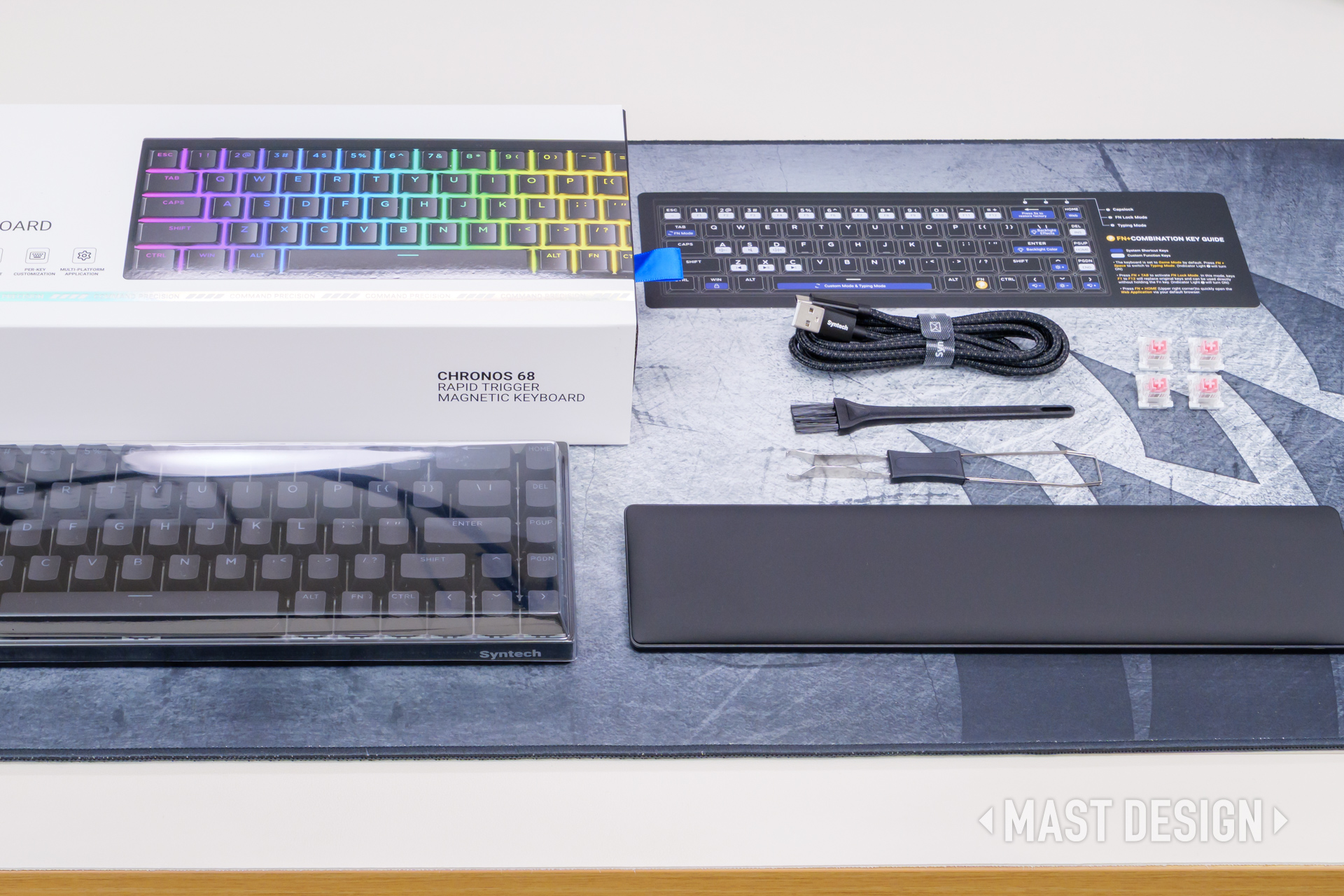 Syntech Chronos 68 は、ラピッドトリガー対応のマグネティックキーボードとして、ポーリングレート最大8000Hzに対応だったり、現在主流となっているゲーミング機能を一通り備えています。