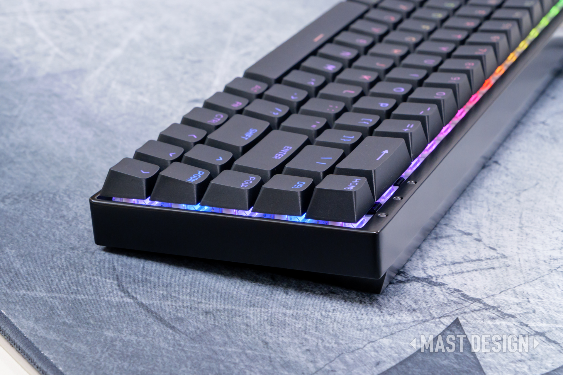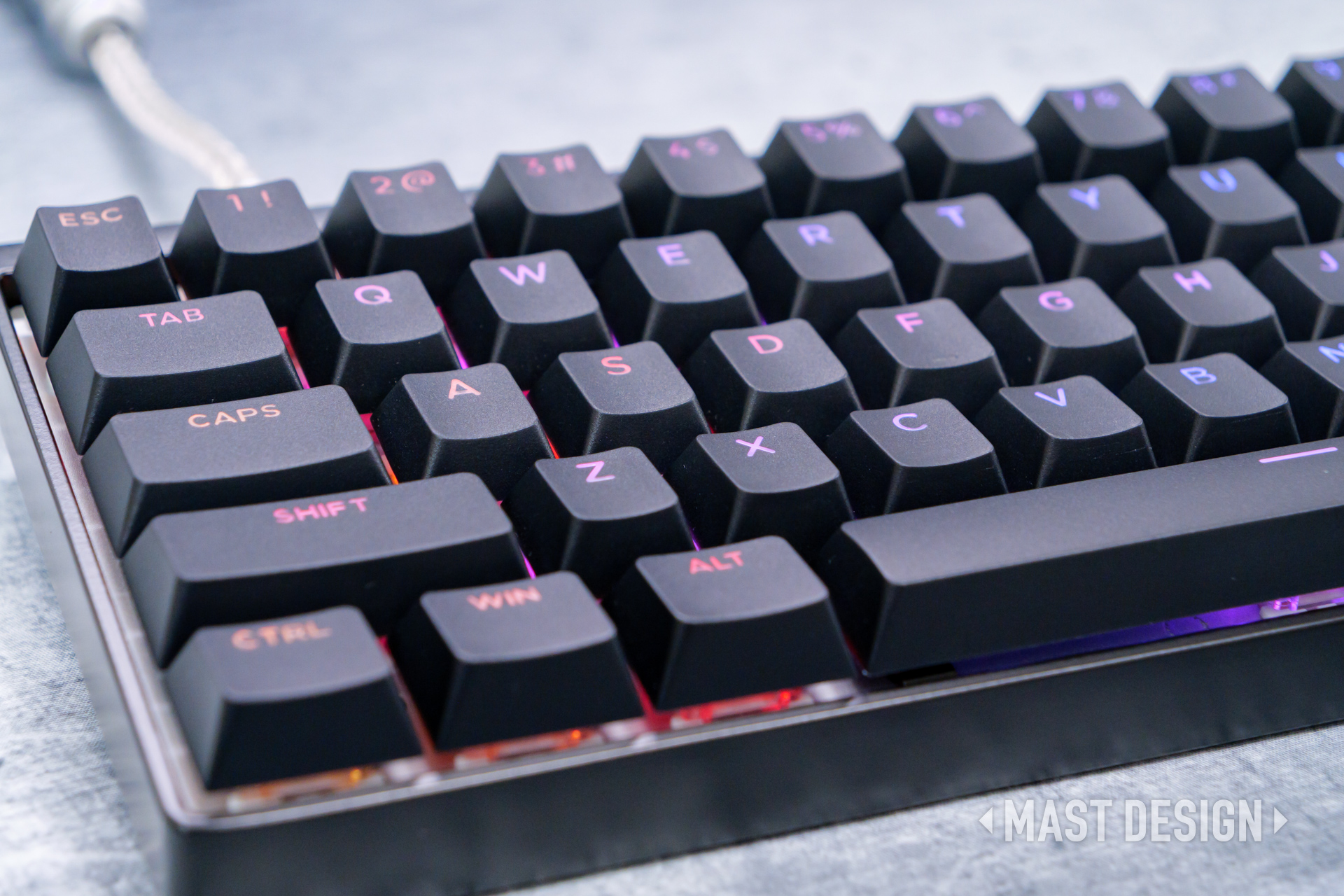 その分、RGBバックライトを点灯させたときの印象は大きく変わり、シャインスルーキーキャップと組み合わさった照明効果の美しさが強く印象に残ります。