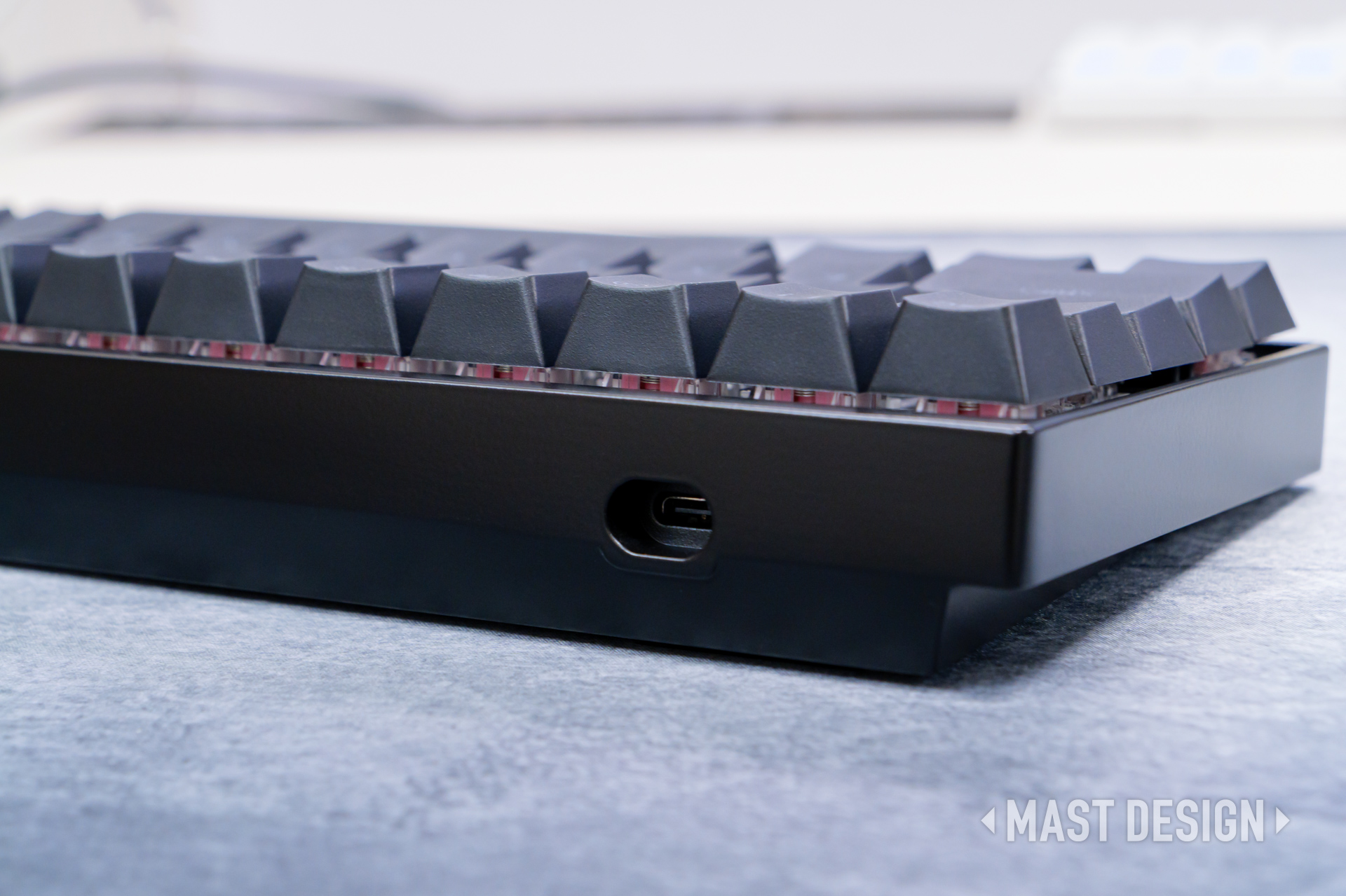 背面にはUSB Type-Cポートのみ。有線接続専用のゲーミングキーボードでは、このような構成になっていることが多いです。