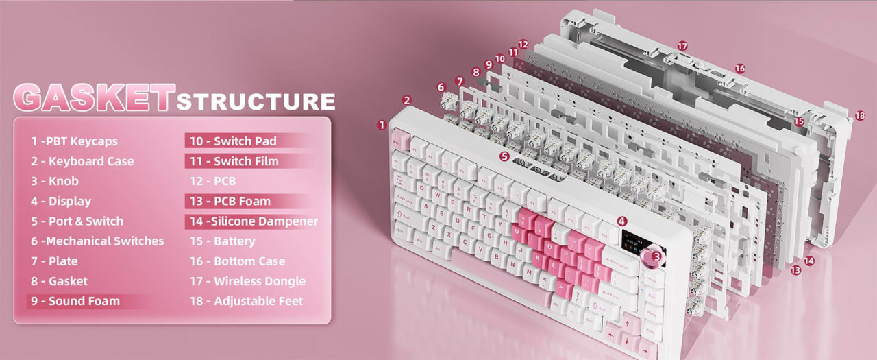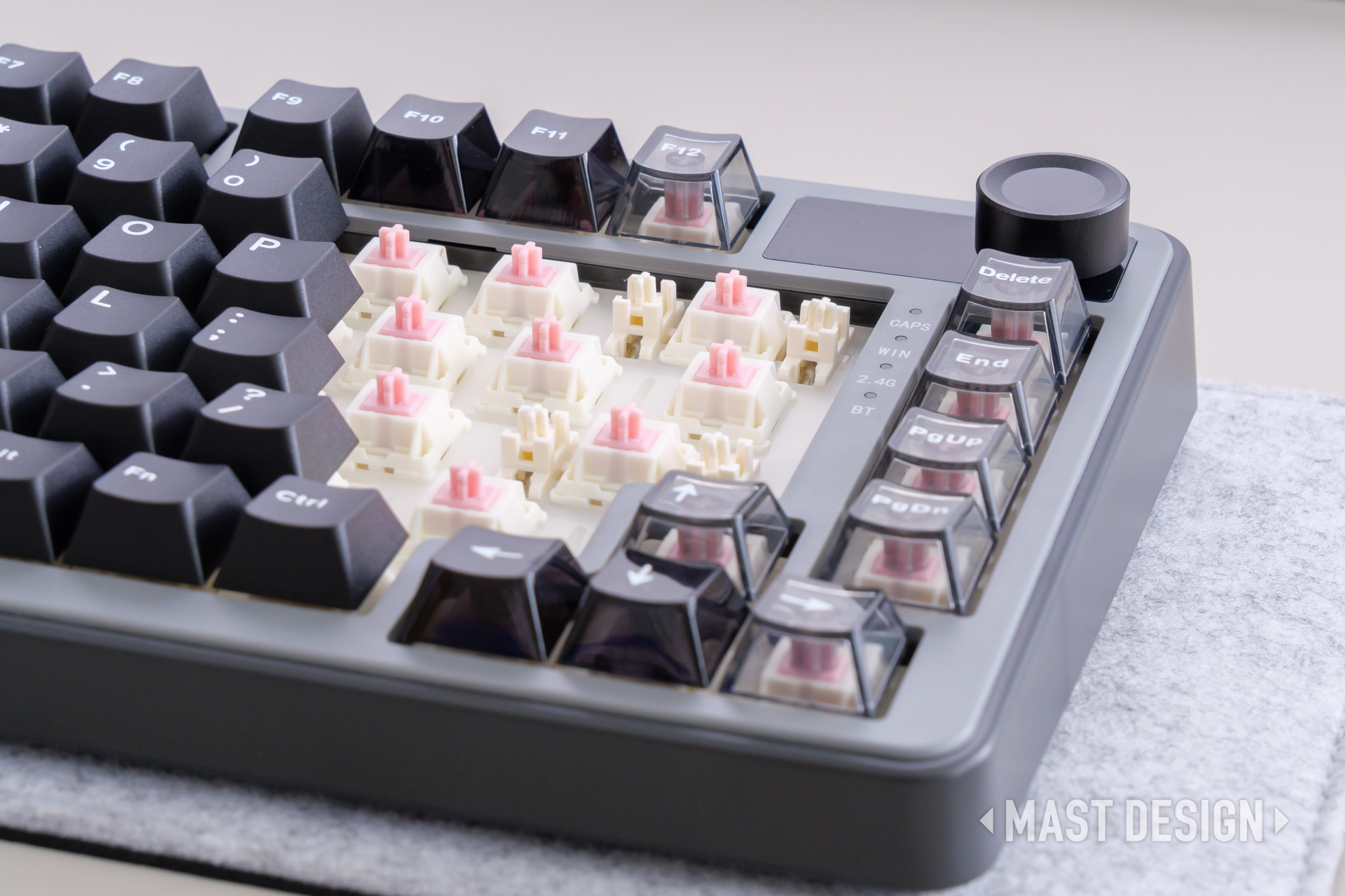 B75 Pro Maxは、前モデルB75 Proをベースに「QMK/VIA対応、TFTスクリーン、8000mAhバッテリー」の 3点が強化されています。