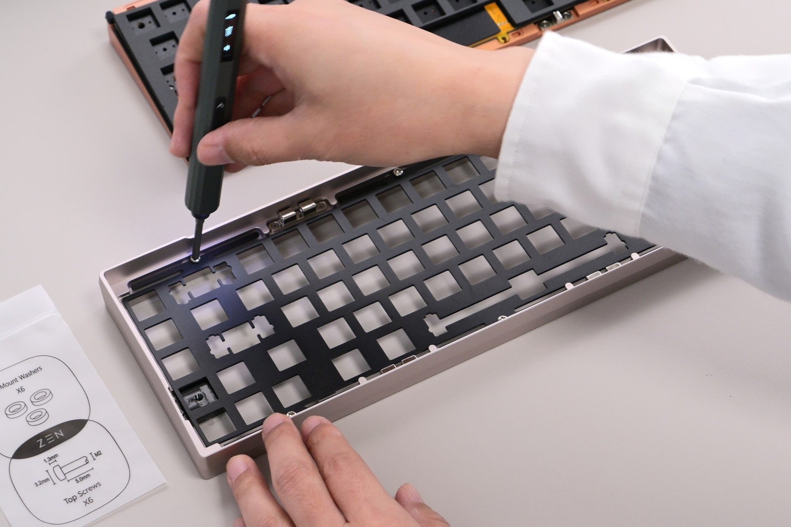 組み立てキットと聞くと少しハードルが高く感じるかもしれませんが、ZEN65はマグネットPOGOピンによる接続で配線もなく、ケースの取り付けもボールキャッチ構造で簡単になっています。