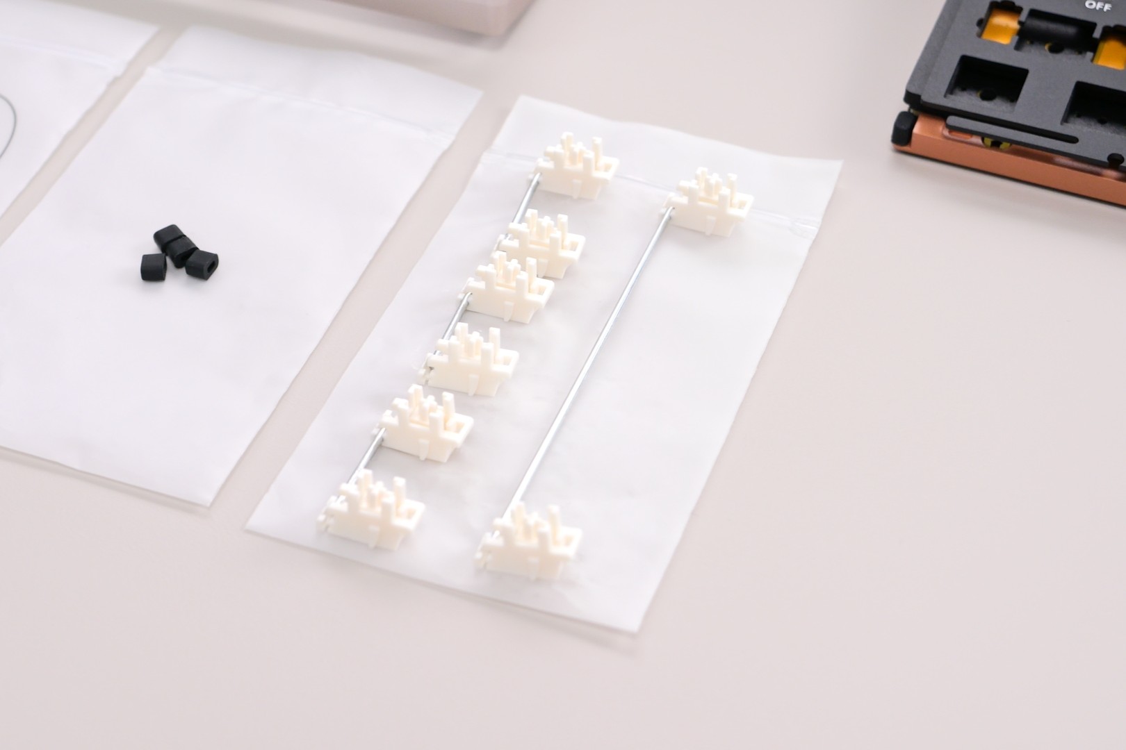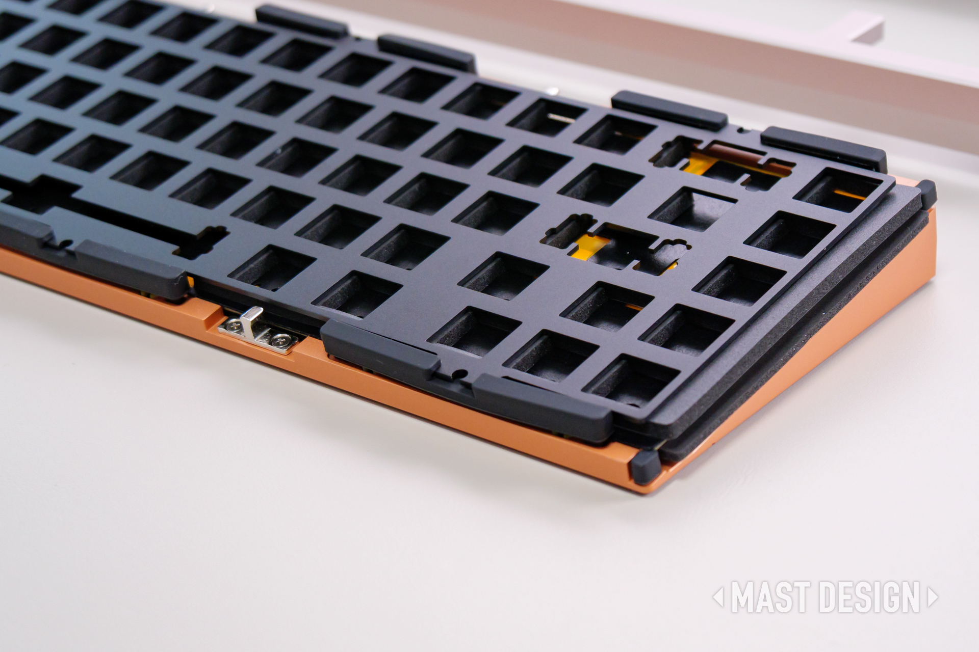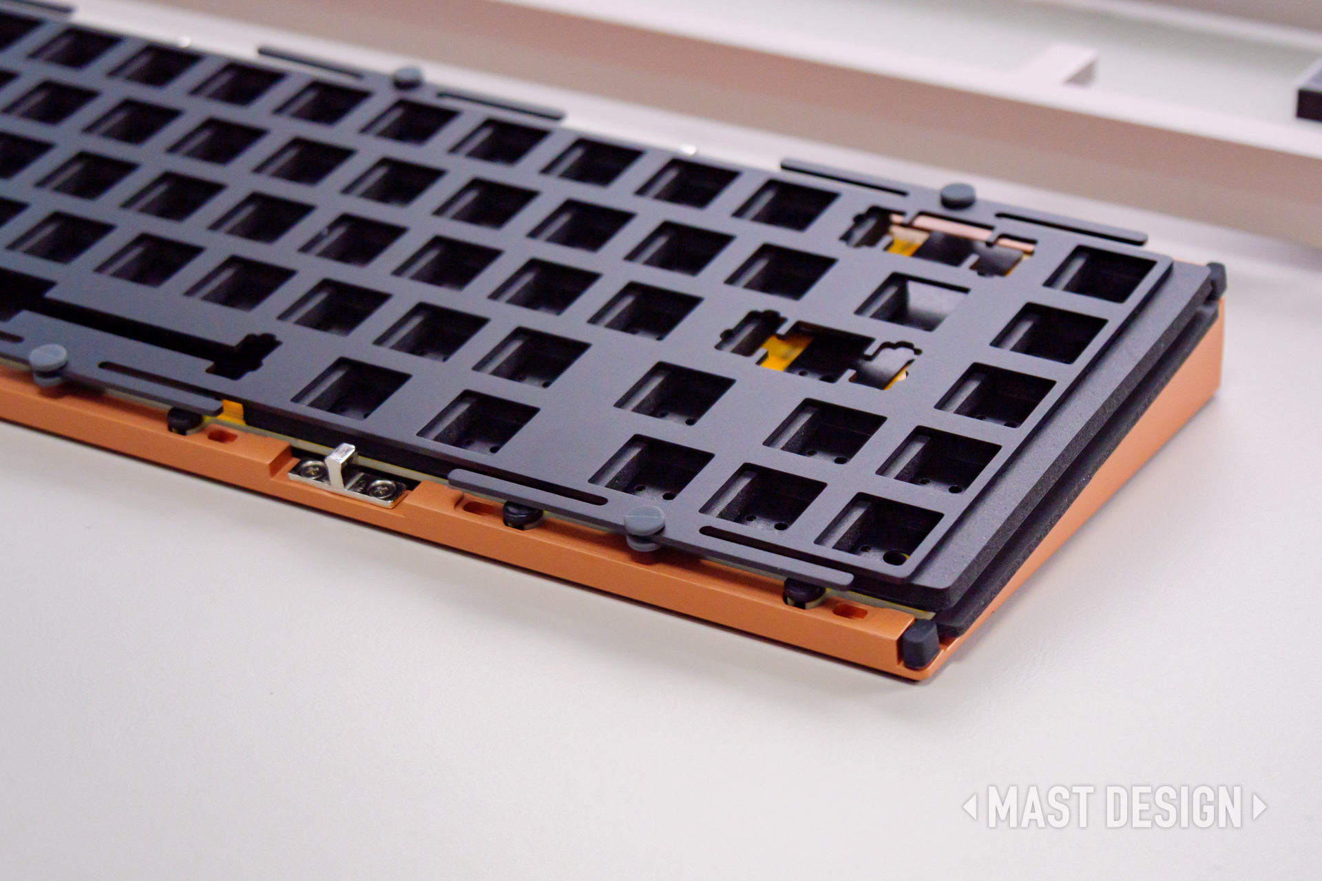 ZEN65 Copperには、打鍵音や打鍵感を調整するための複数のフォームが用意されていますが、今回は標準的な構成で組み立てています。