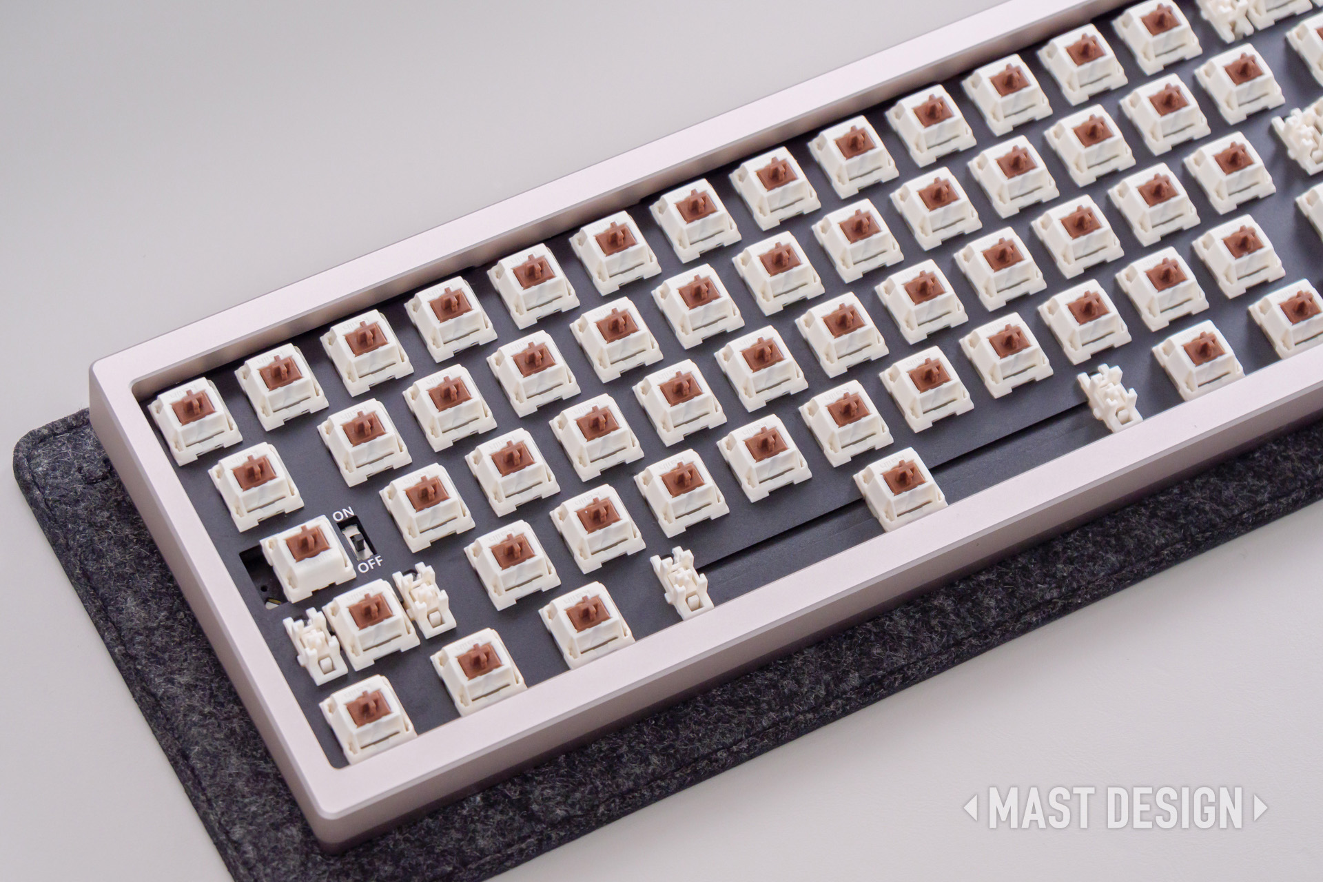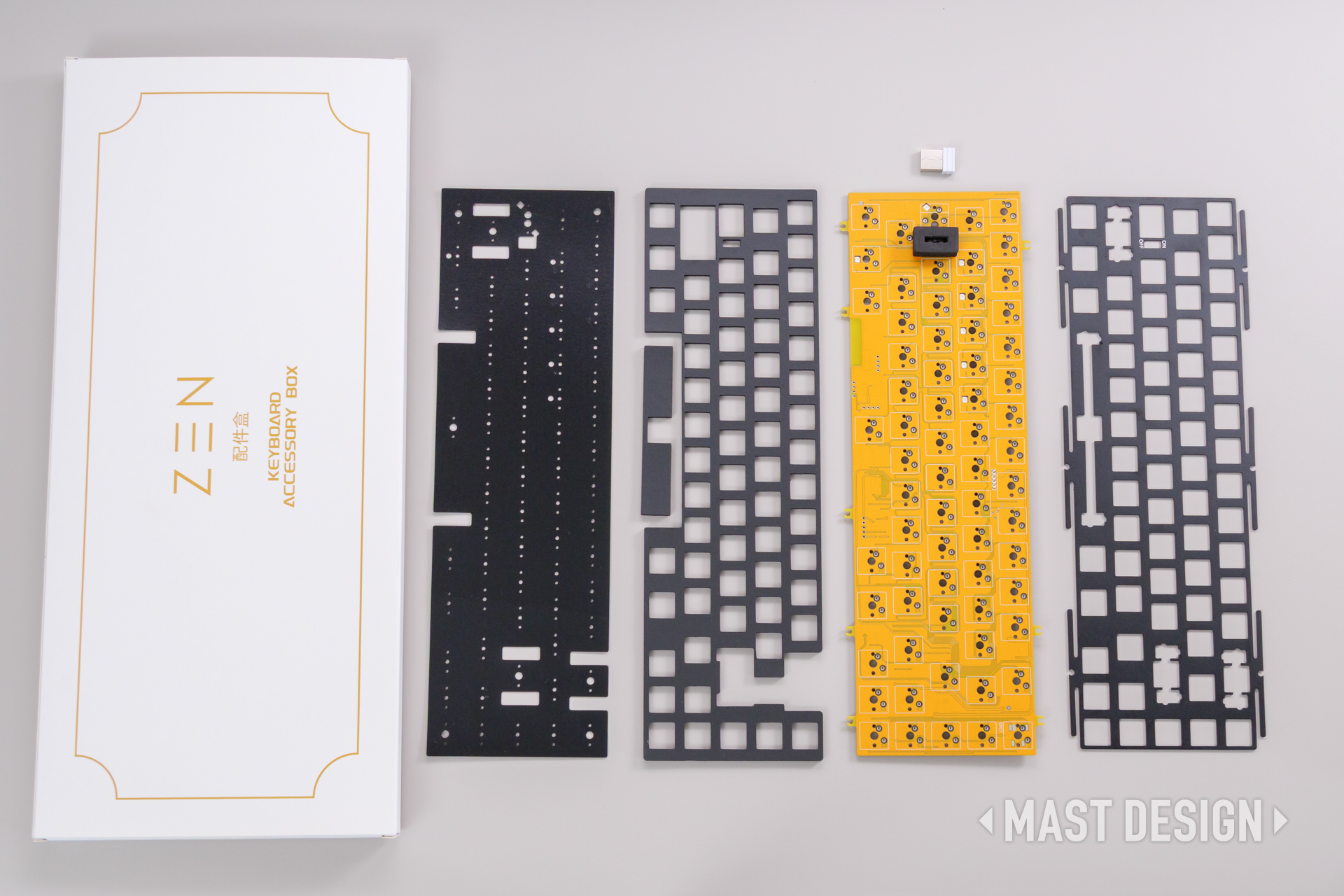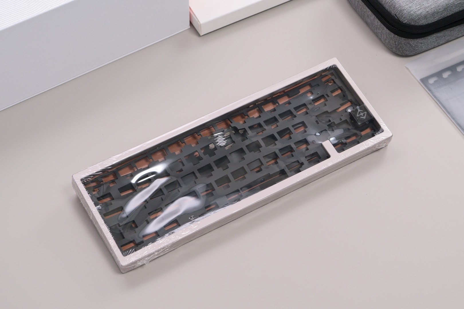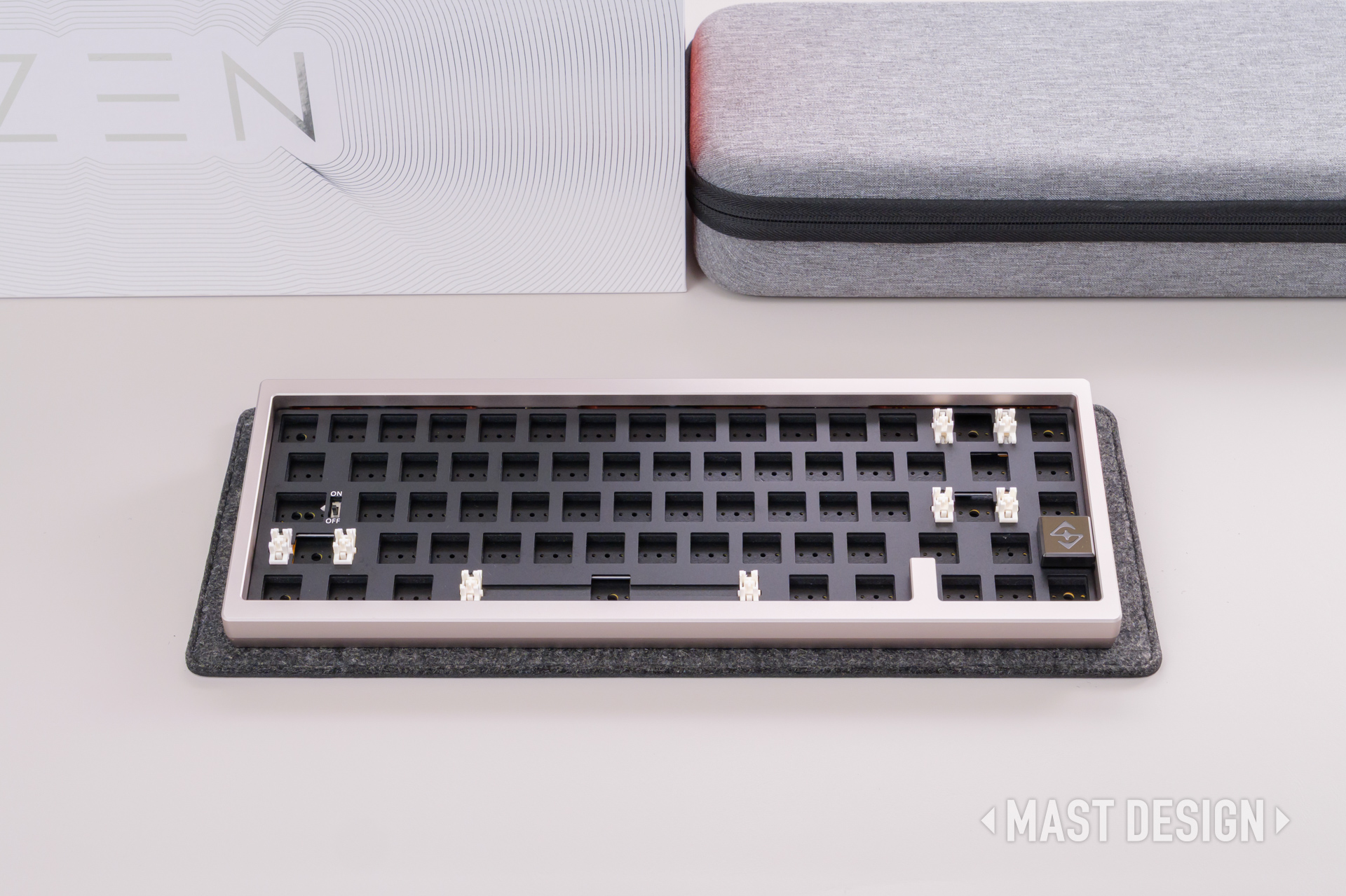 ZEN65 Copper 限定キットは、組み立てキット仕様のためスイッチとキーキャップは付属しないため、自分の好きなものを用意して取り付けます。