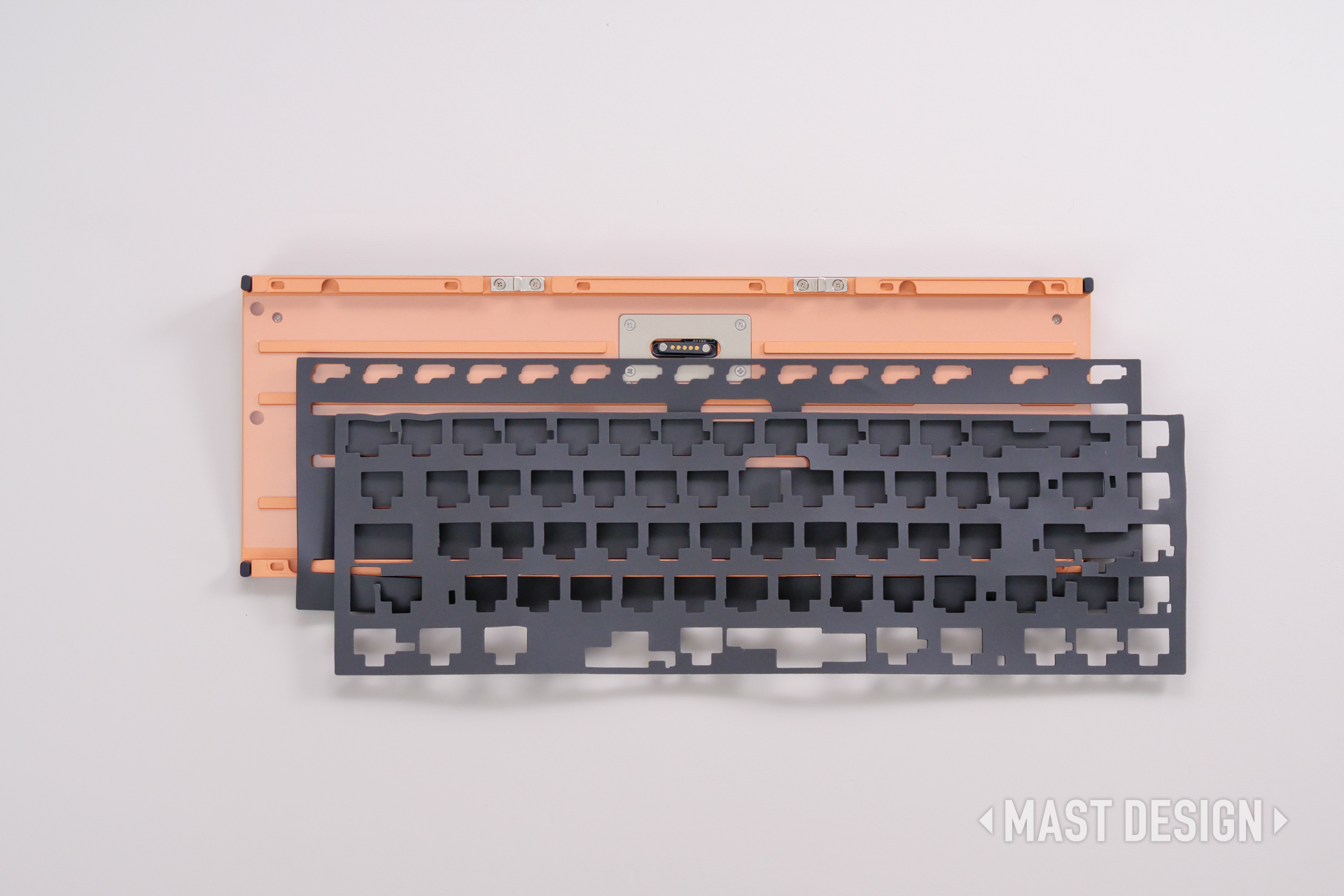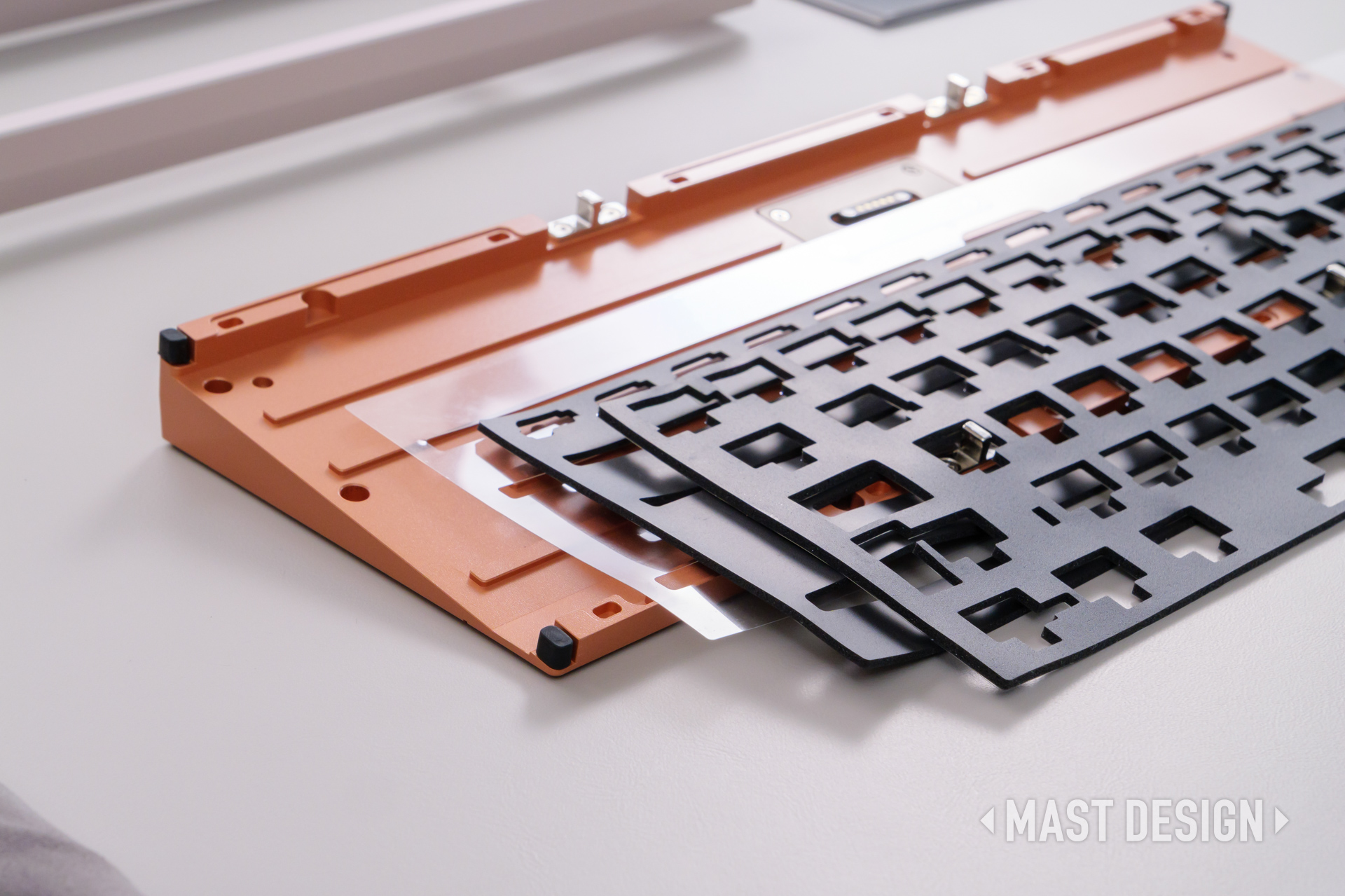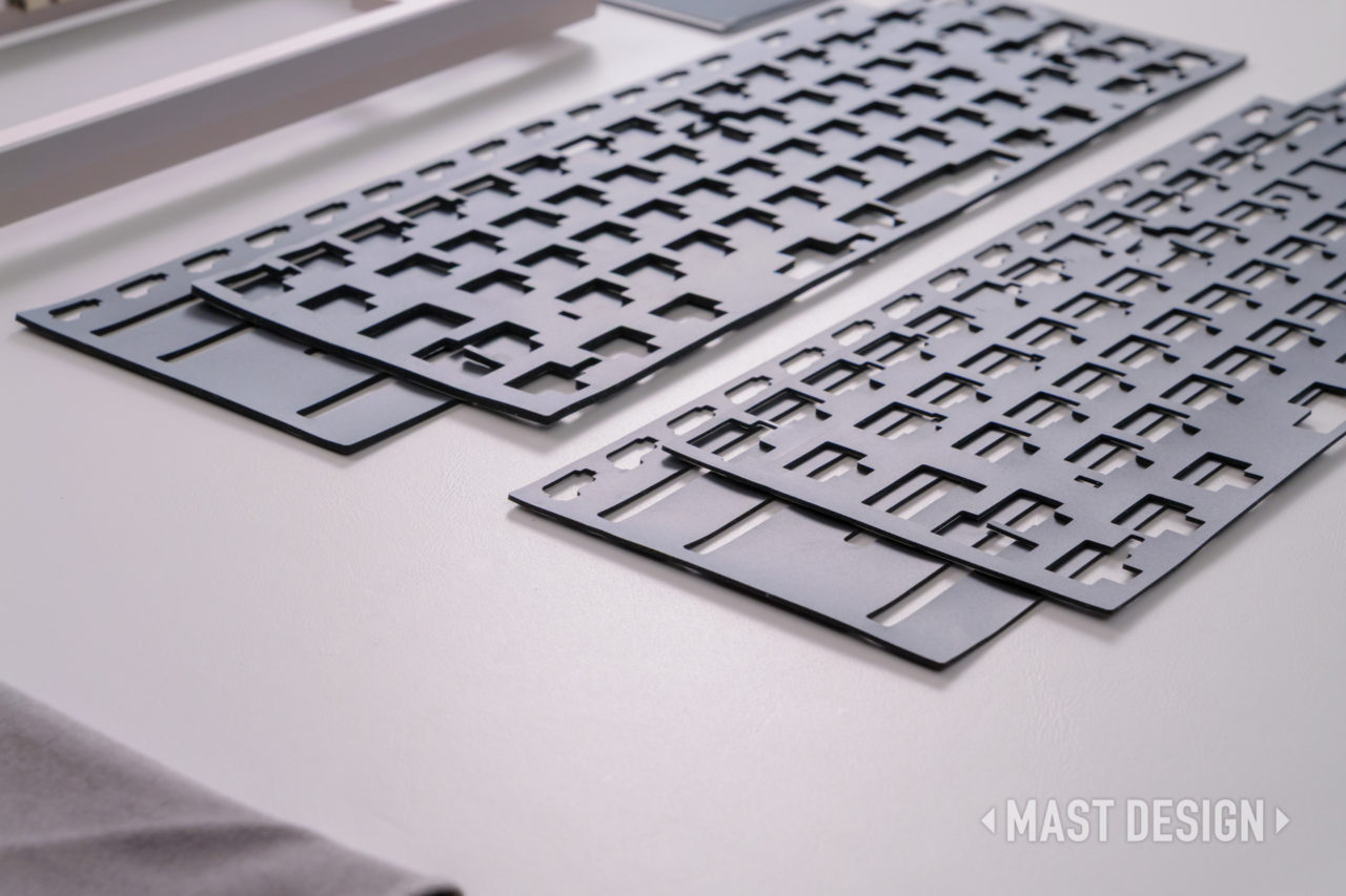 ガスケットマウントでは、プレートとケースの間にガスケット素材を配置することで、打鍵時の振動をコントロールする構造になっています。