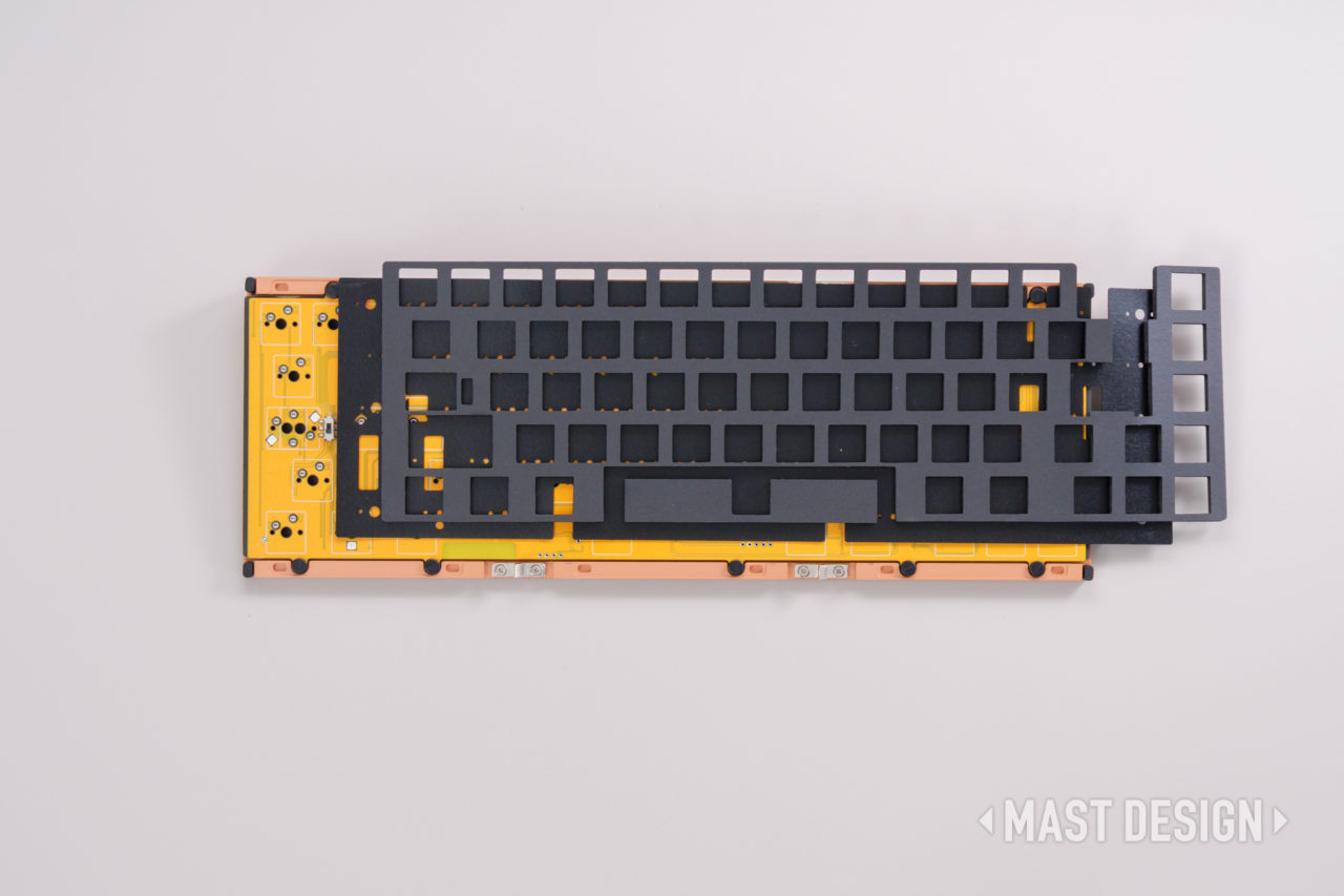 キット重量としては約2.5kgとなり、65%キーボードとしては非常に重量感のあるボディとなっています。