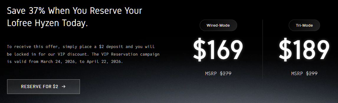 また、「Hyzen Pre-launch ページ」を見る限り、有線モードモデルとTriモードモデルが用意されており、組み合わせとしては計4パターンの展開となるようです。