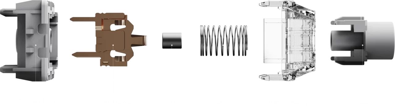 一方でメカニカルスイッチは、金属リーフとステムの接触によって入力を検知します。